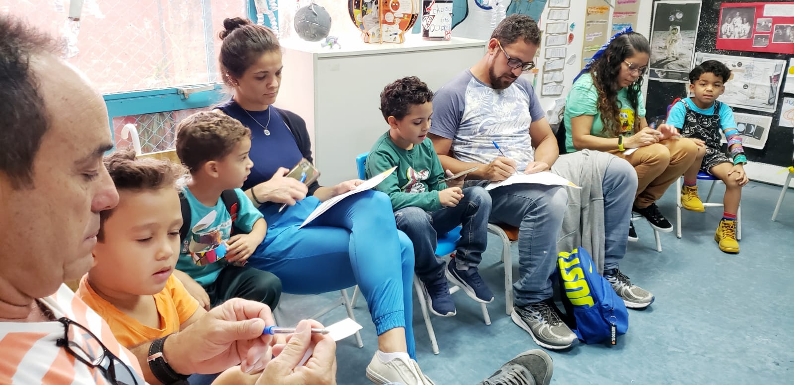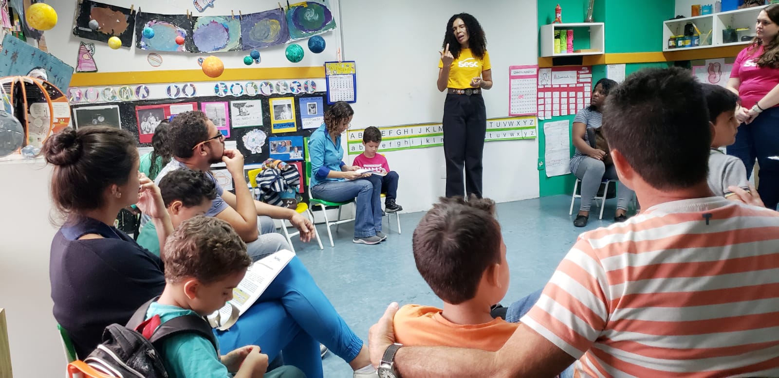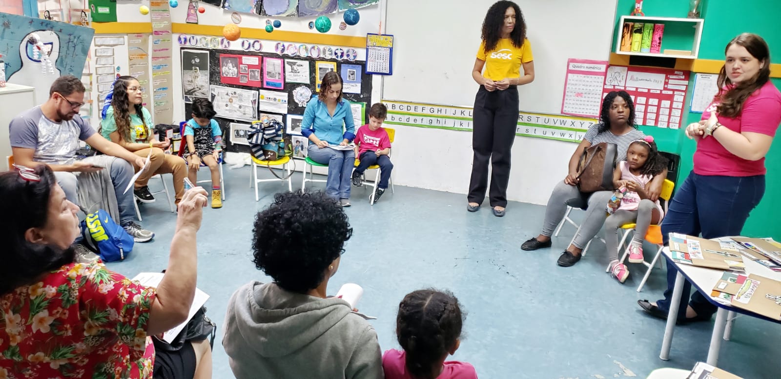 Encerramos o semestre com um Entre nós com as famílias da Educação Infantil (dia 14 de julho) e do Sesc +Infâncias (dia 15 de julho) com rodas de conversa, exposições e brincadeiras mediadas pela equipe, crianças e responsáveis.