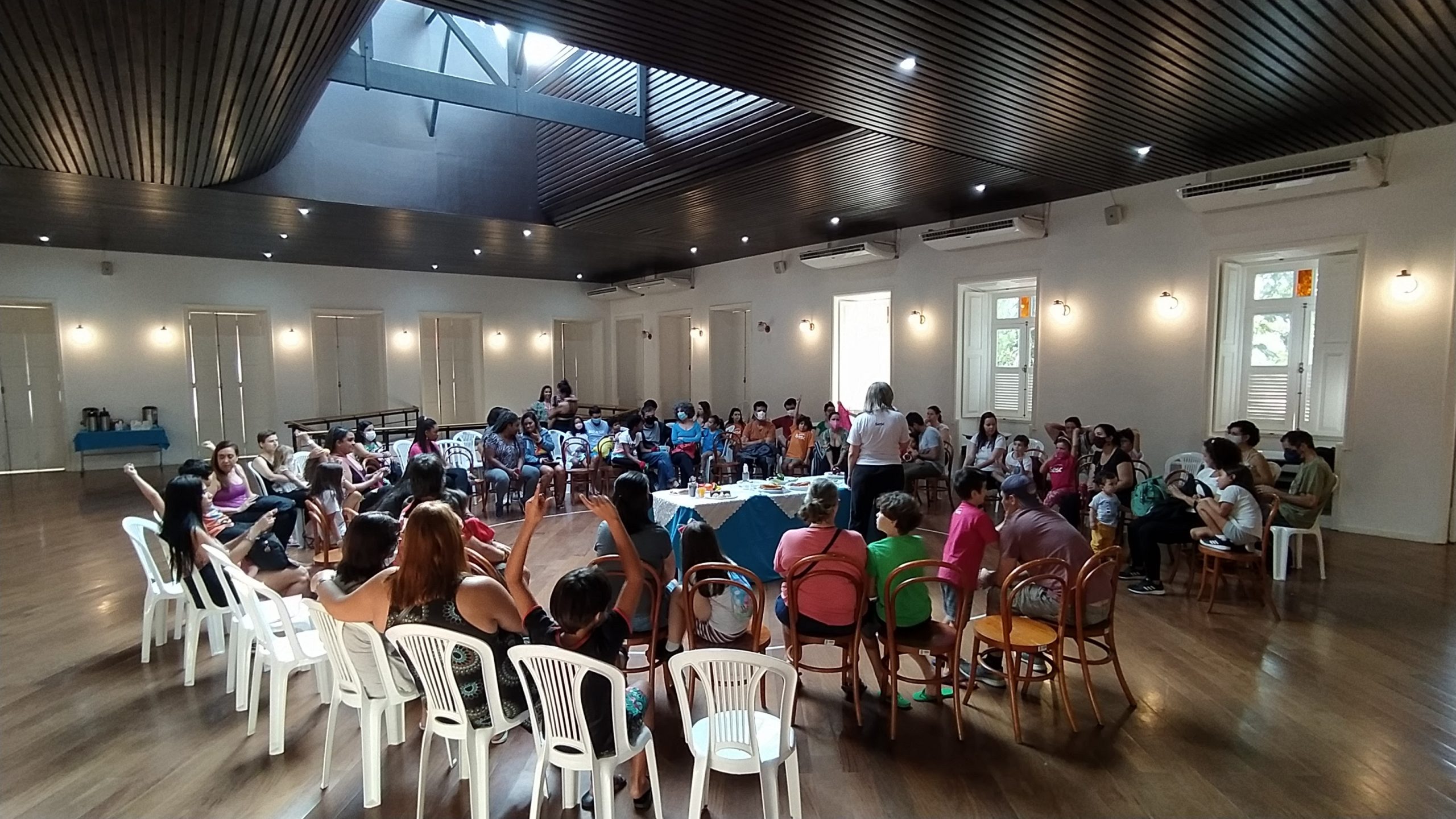 O encontro contou com uma quadrilha caipira formada pelas famílias, um quiz interativo sobre falas típicas de pais e filhos e também brincadeiras envolvendo atividades corporais e de alongamento. Para fechar o evento, propôs-se uma atividade onde cada família pode decorar um vaso de cerâmica e realizar o plantio de uma muda. Durante o processo os participantes foram orientados pela equipe responsável que todas as etapas fossem realizadas de forma coletiva e que o resultado dessa atividade representasse o elo familiar dos participantes.