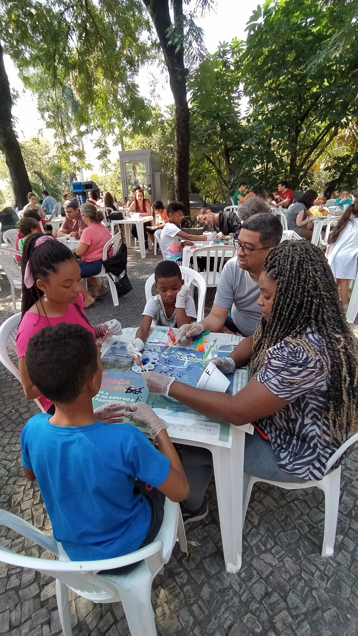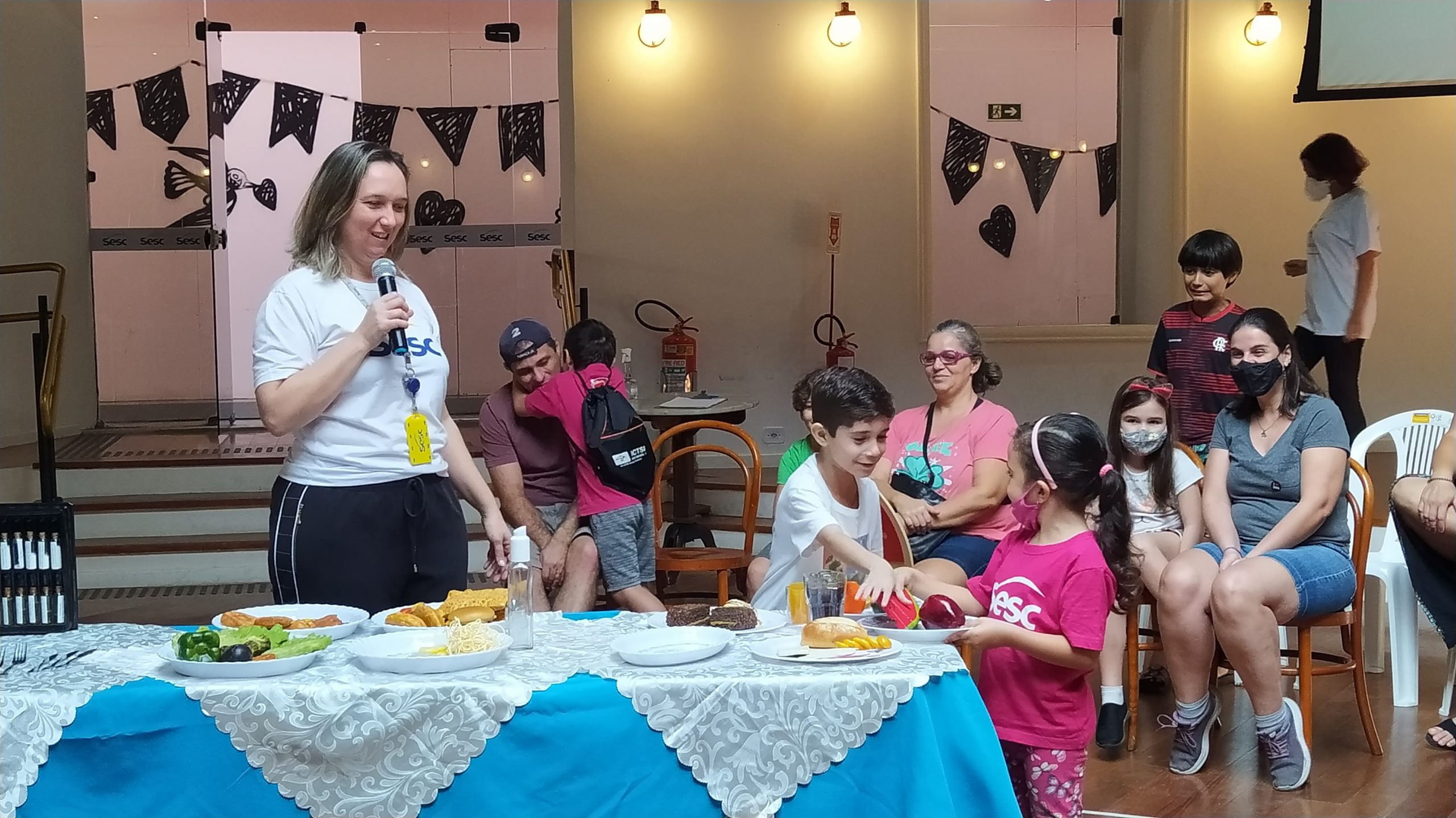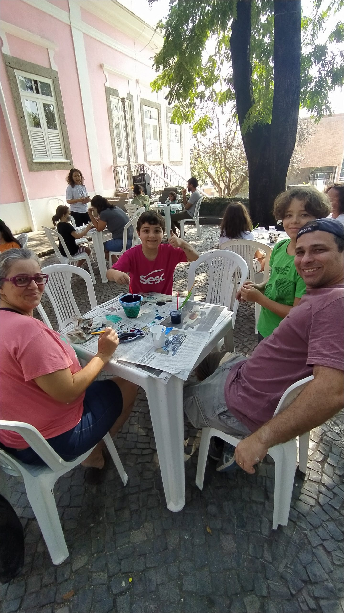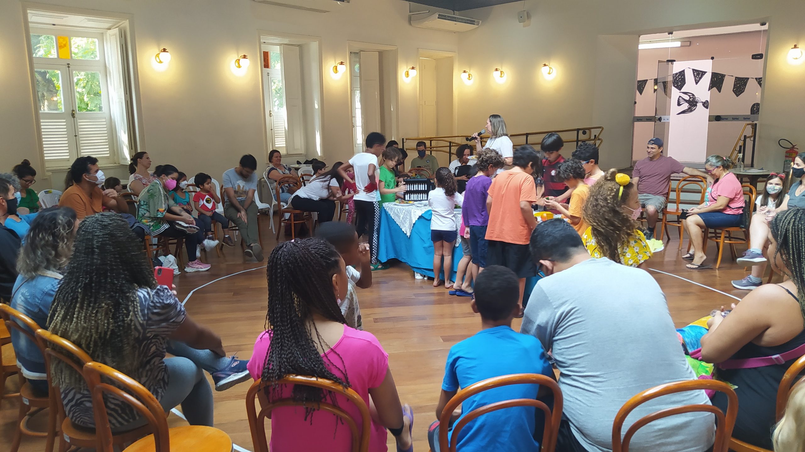 No Entre nós (Encontro das famílias do Sesc +Infâncias), realizado no dia 9/07 foram desenvolvidas atividades interativas que tinham como foco principal a valorização e ressignificação dos elos familiares. A atividade teve a presença de 84 pessoas, entre responsáveis e crianças.