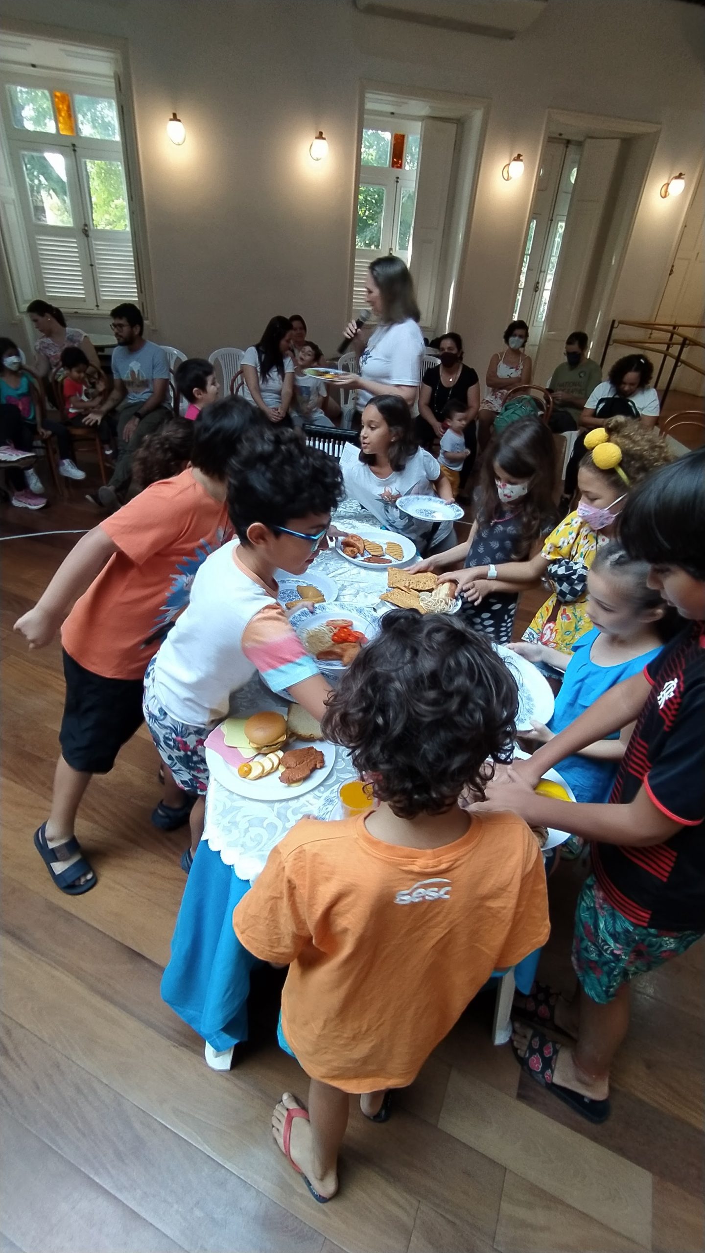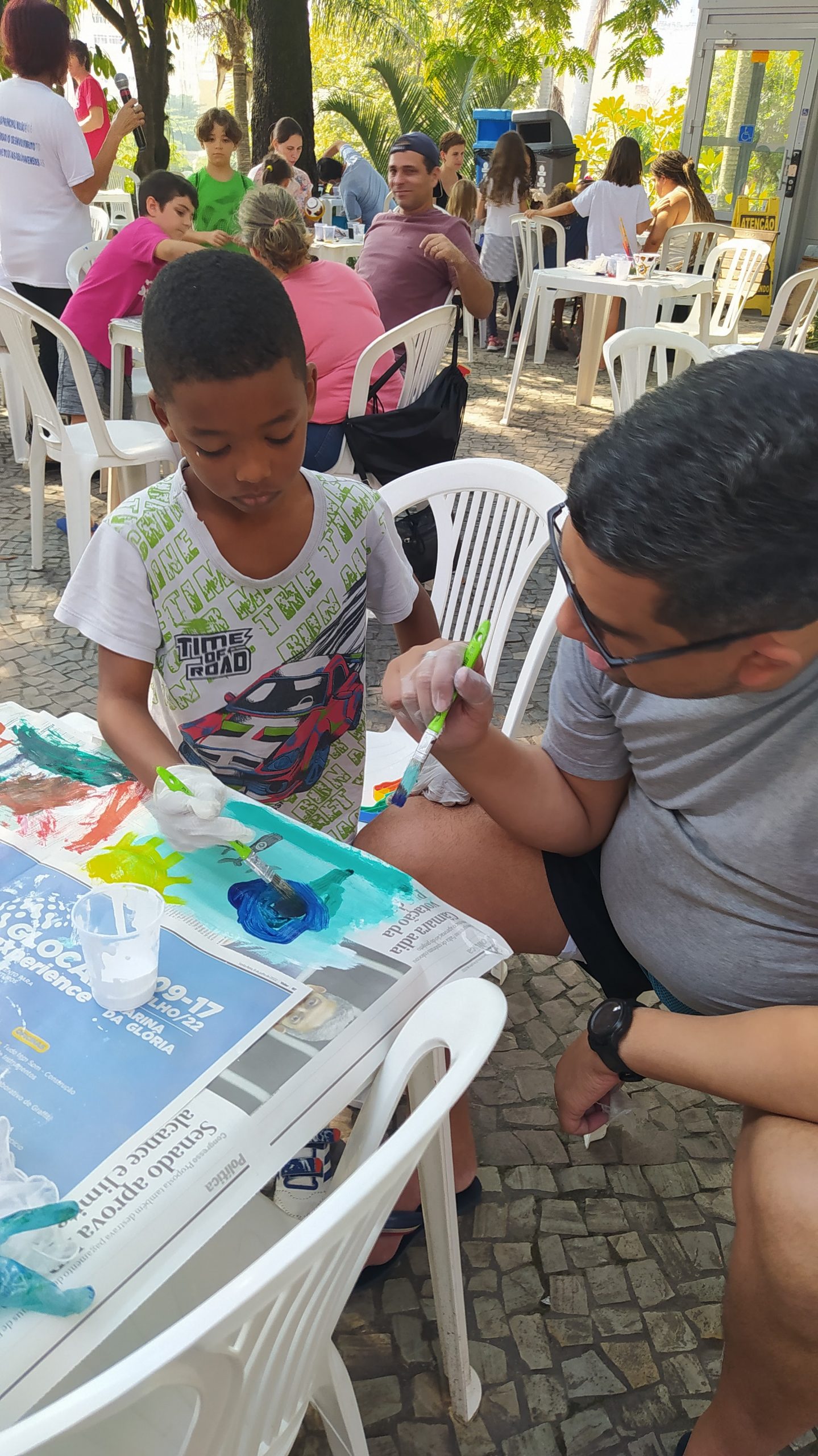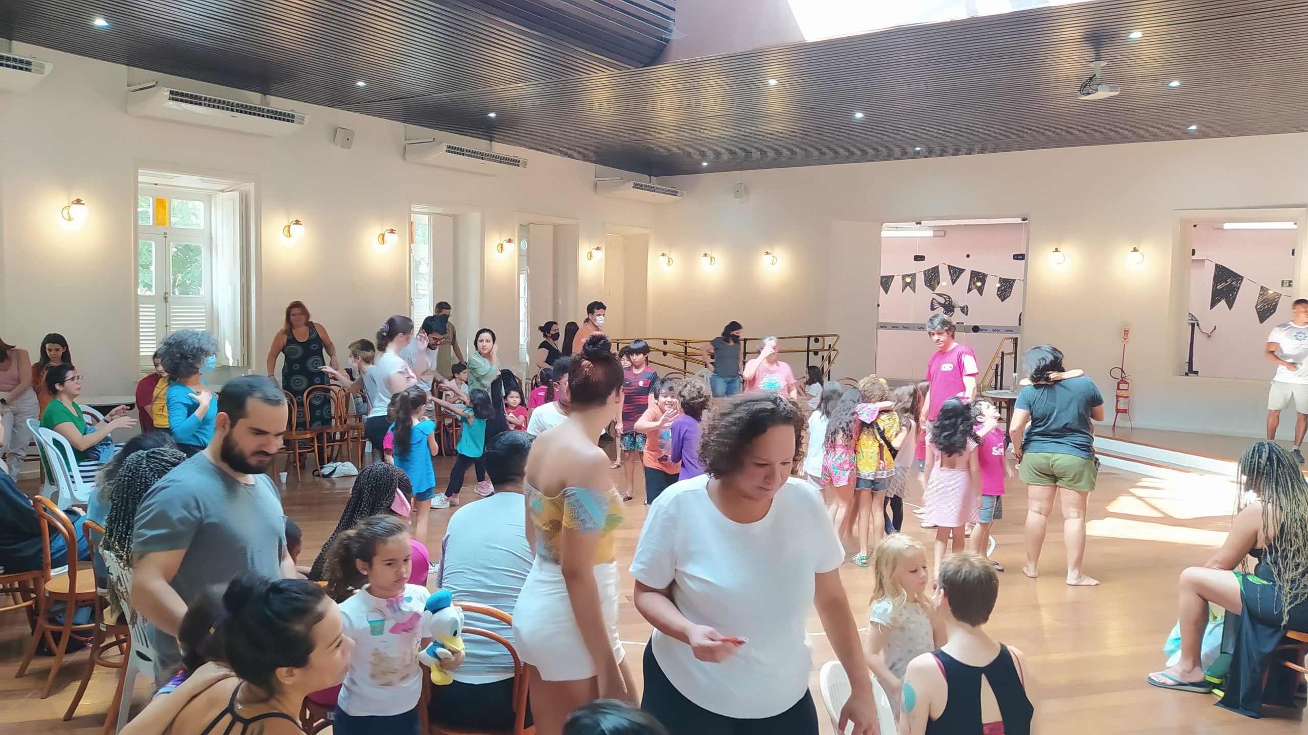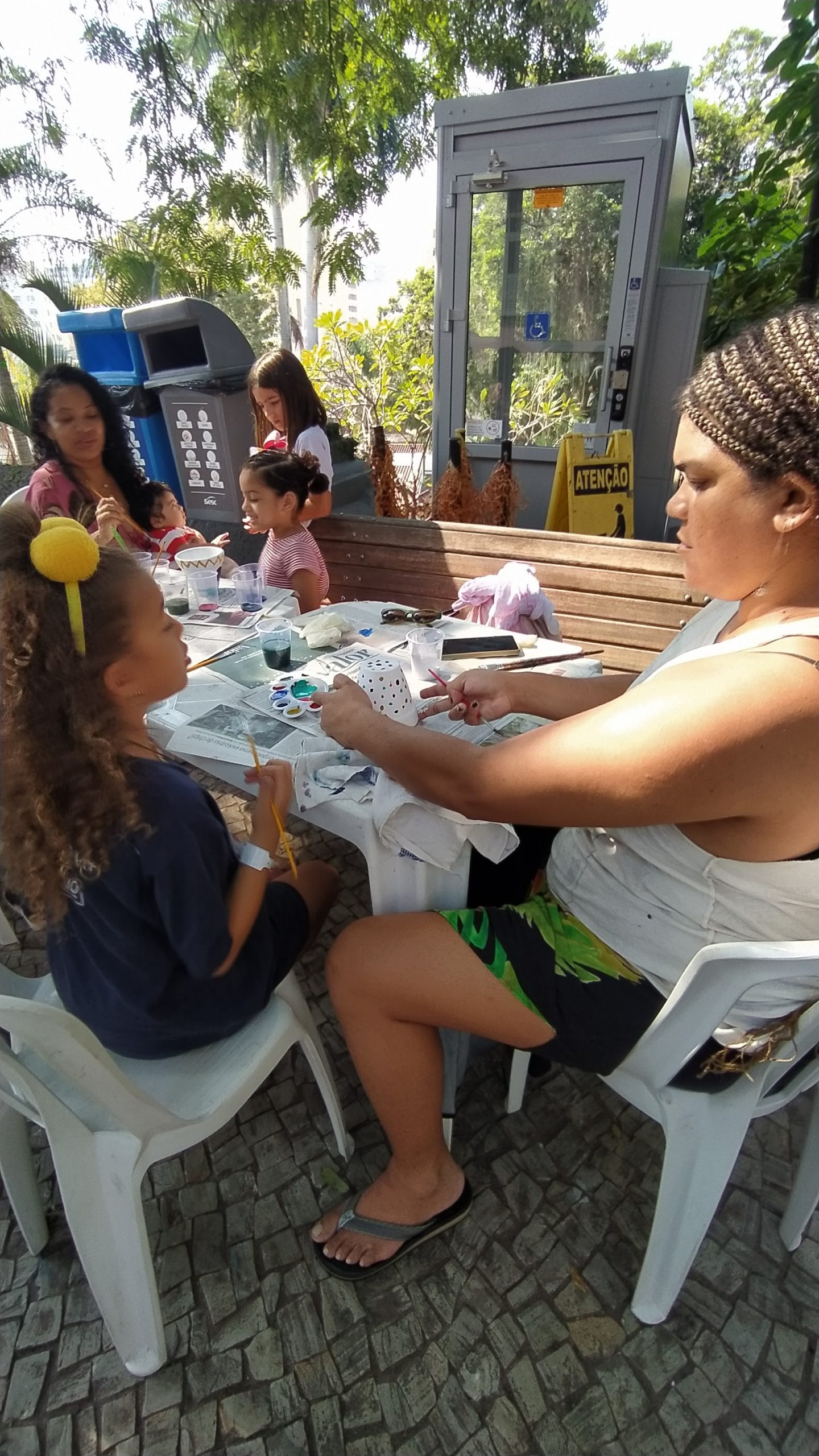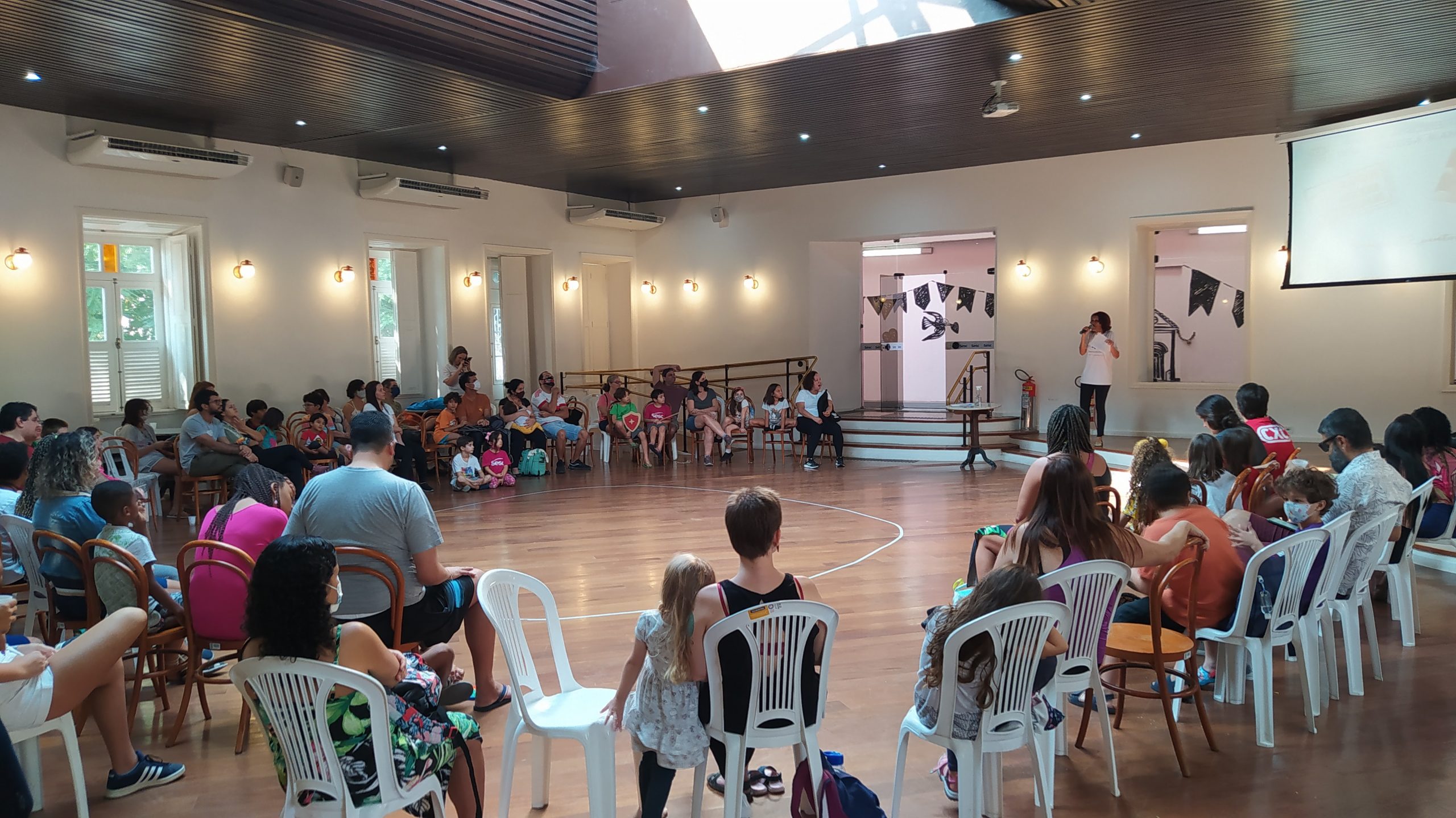 No Entre nós (Encontro das famílias do Sesc +Infâncias), realizado no dia 9/07 foram desenvolvidas atividades interativas que tinham como foco principal a valorização e ressignificação dos elos familiares. A atividade teve a presença de 84 pessoas, entre responsáveis e crianças.