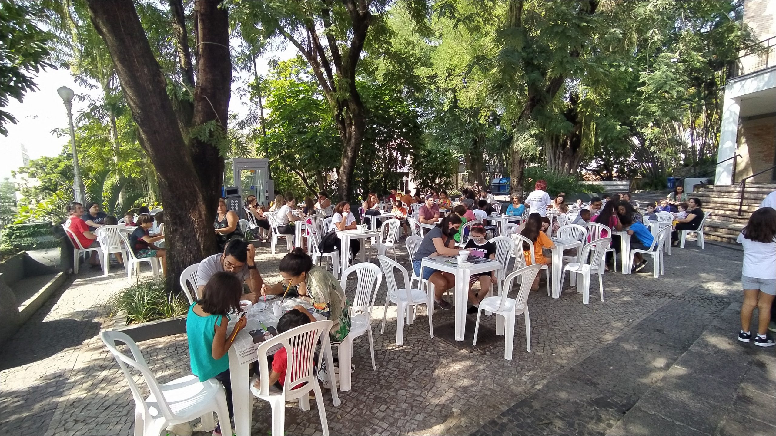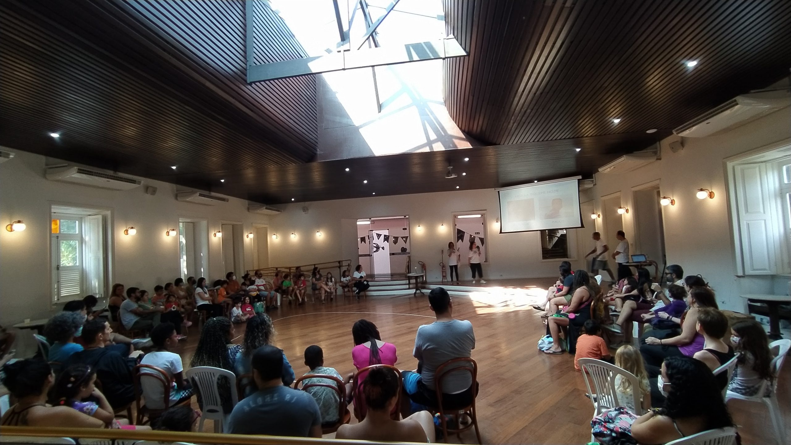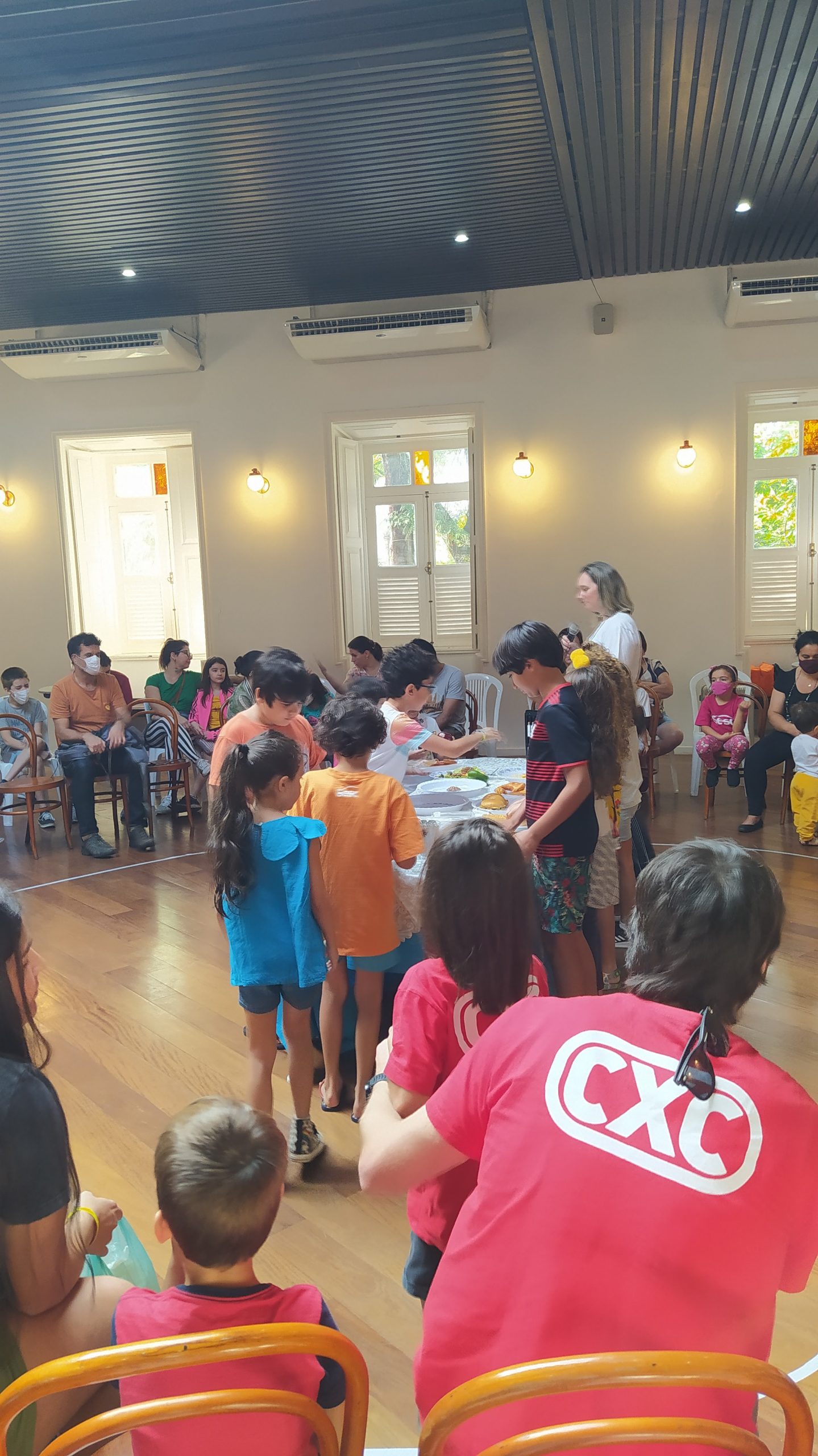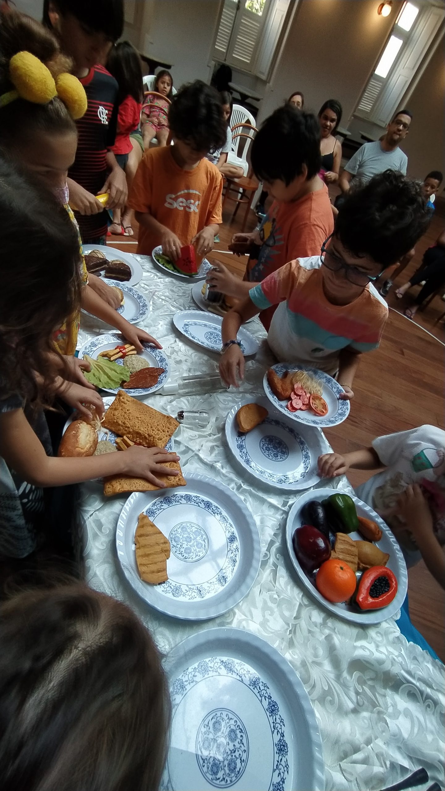 No Entre nós (Encontro das famílias do Sesc +Infâncias), realizado no dia 9/07 foram desenvolvidas atividades interativas que tinham como foco principal a valorização e ressignificação dos elos familiares. A atividade teve a presença de 84 pessoas, entre responsáveis e crianças.