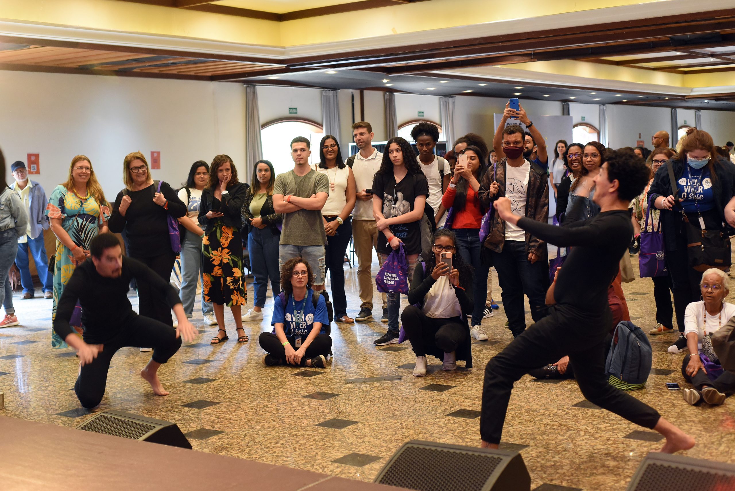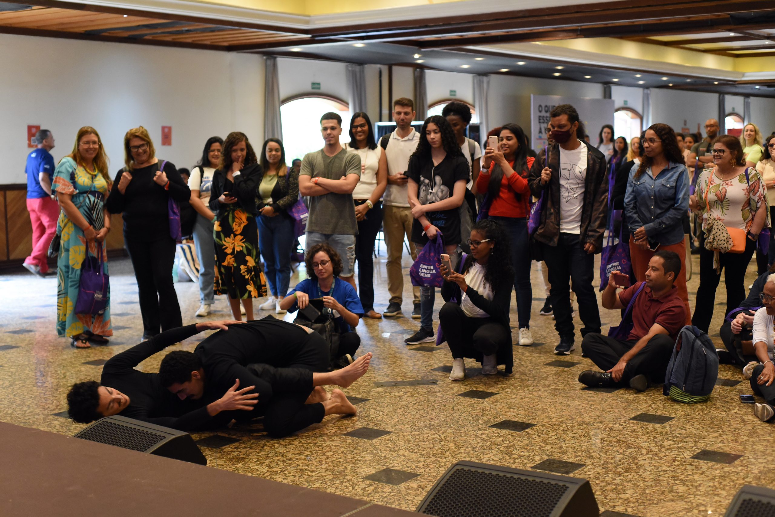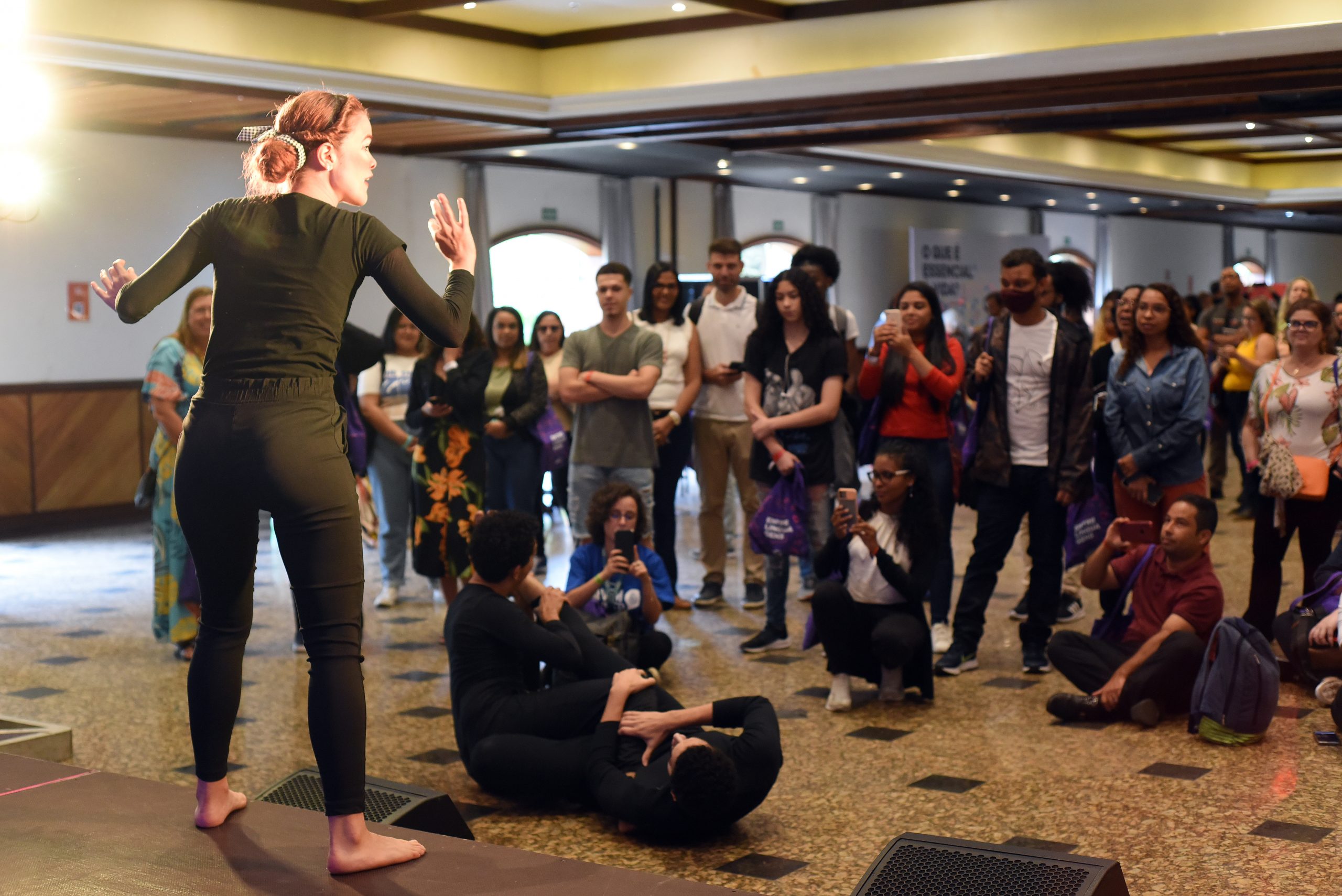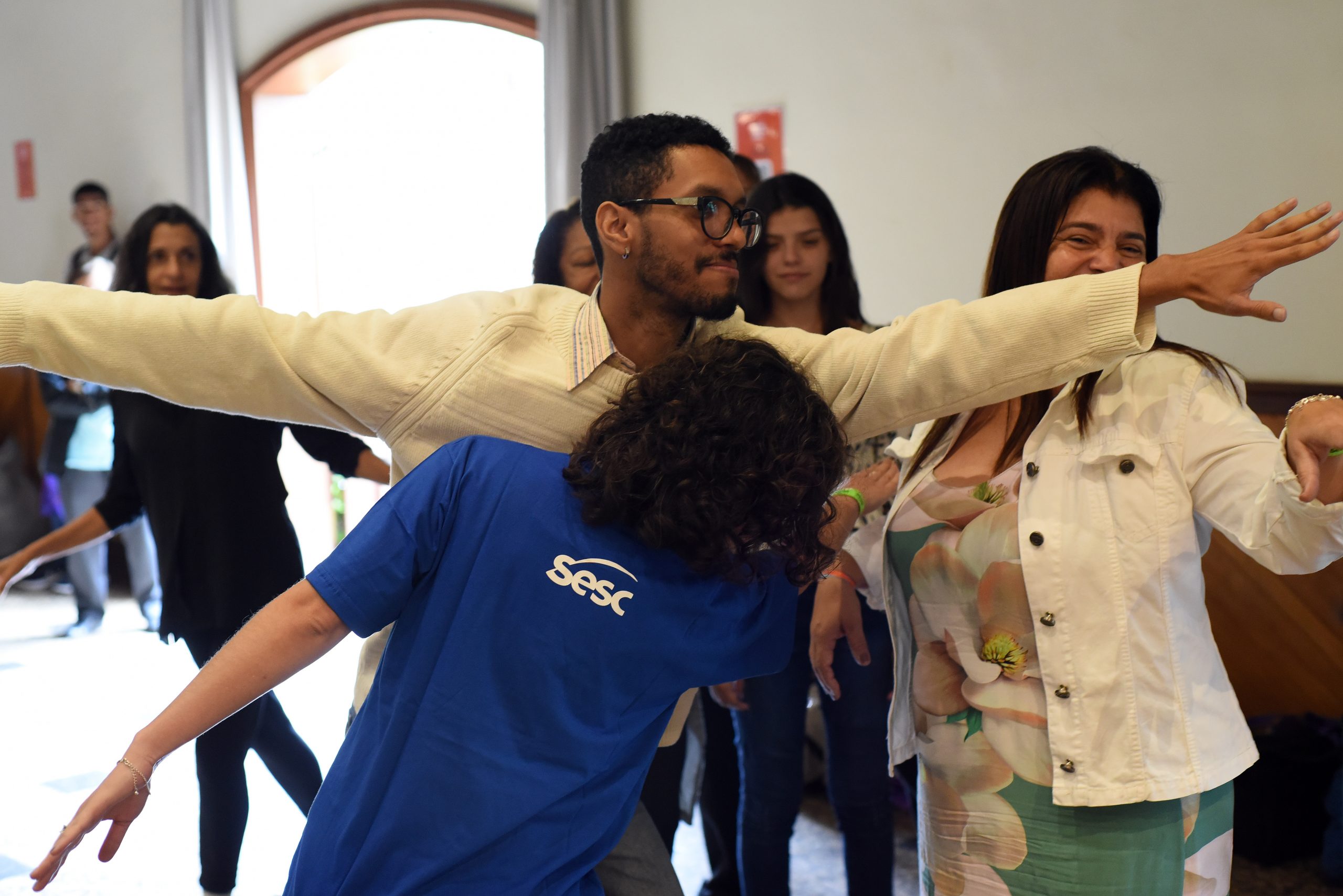 O improviso: A proposta desta oficina foi convidar os participantes a pensarem como a vida é imprevisível a partir da a expressão corporal e interação entre todos os participantes.