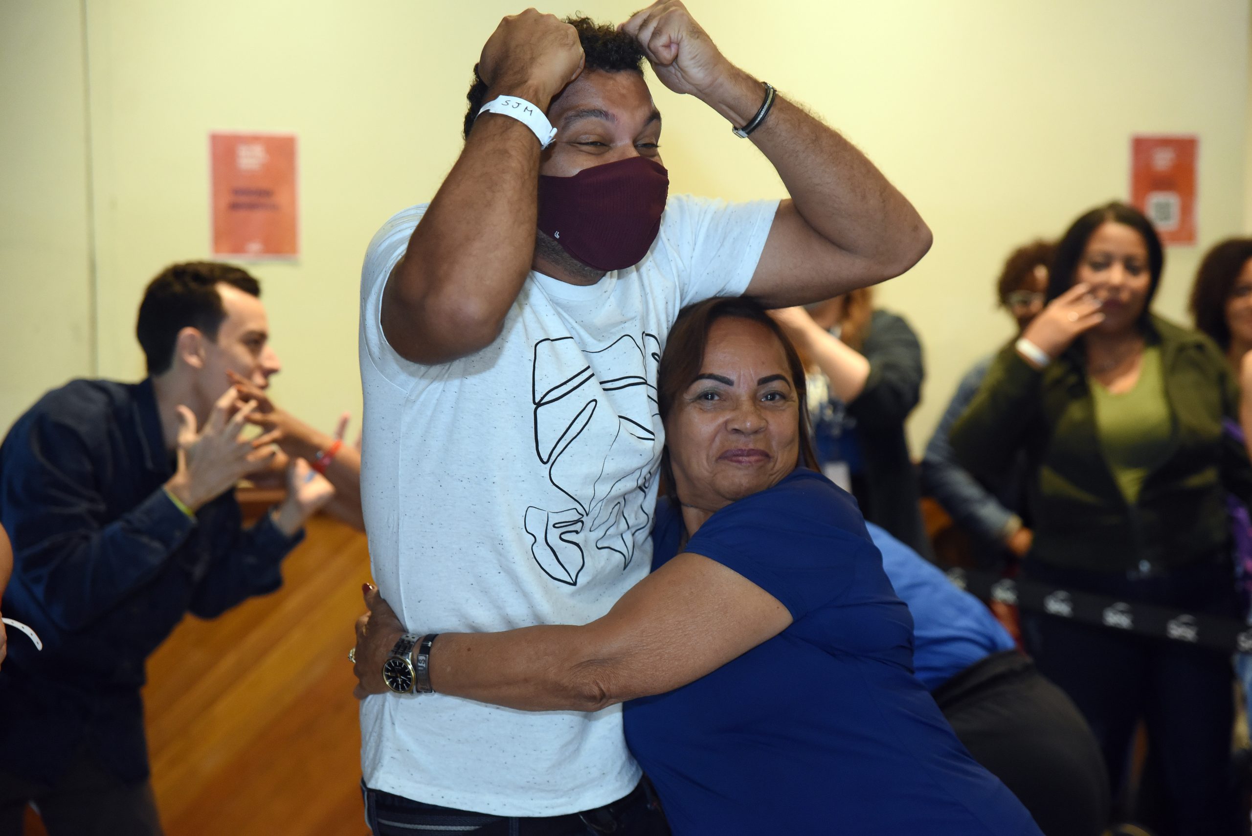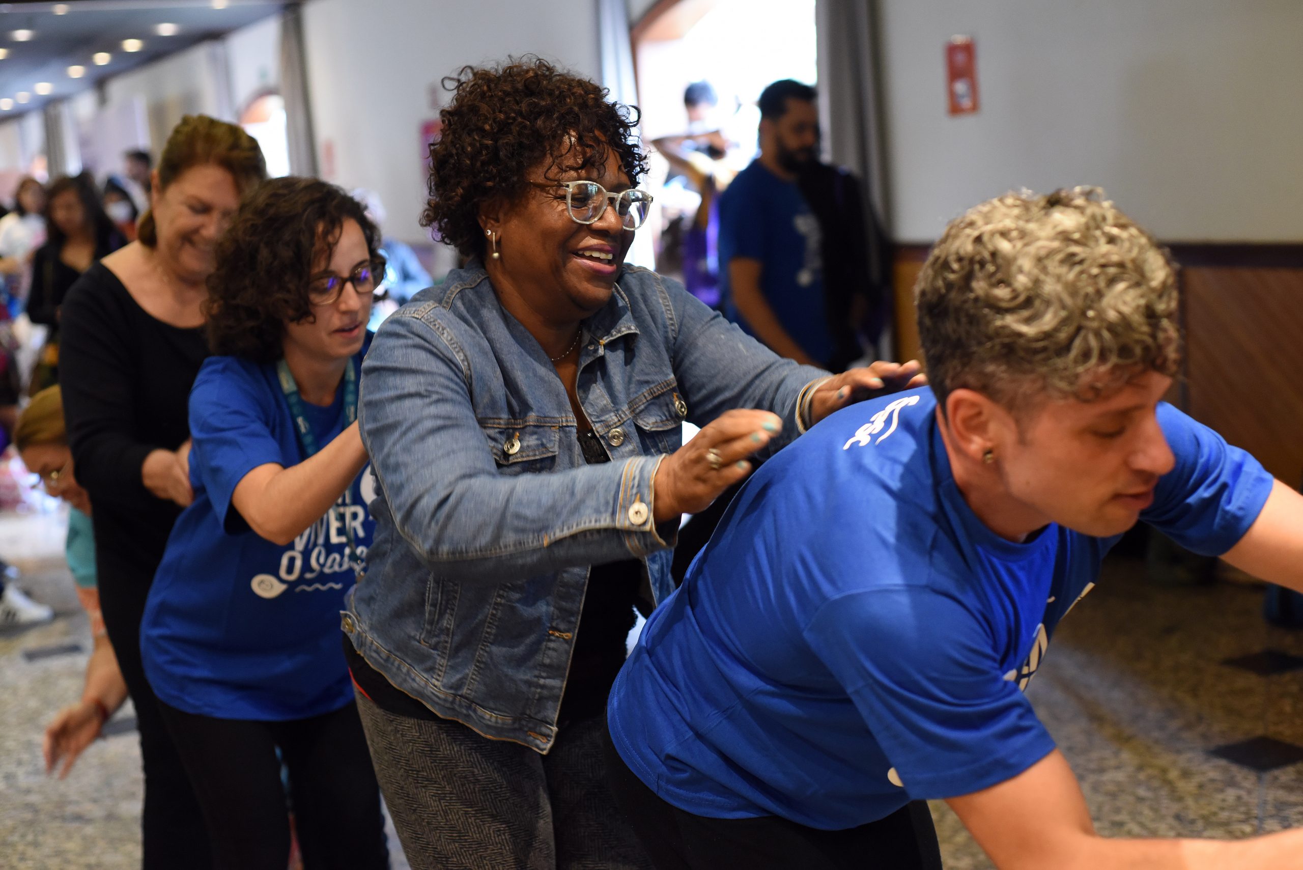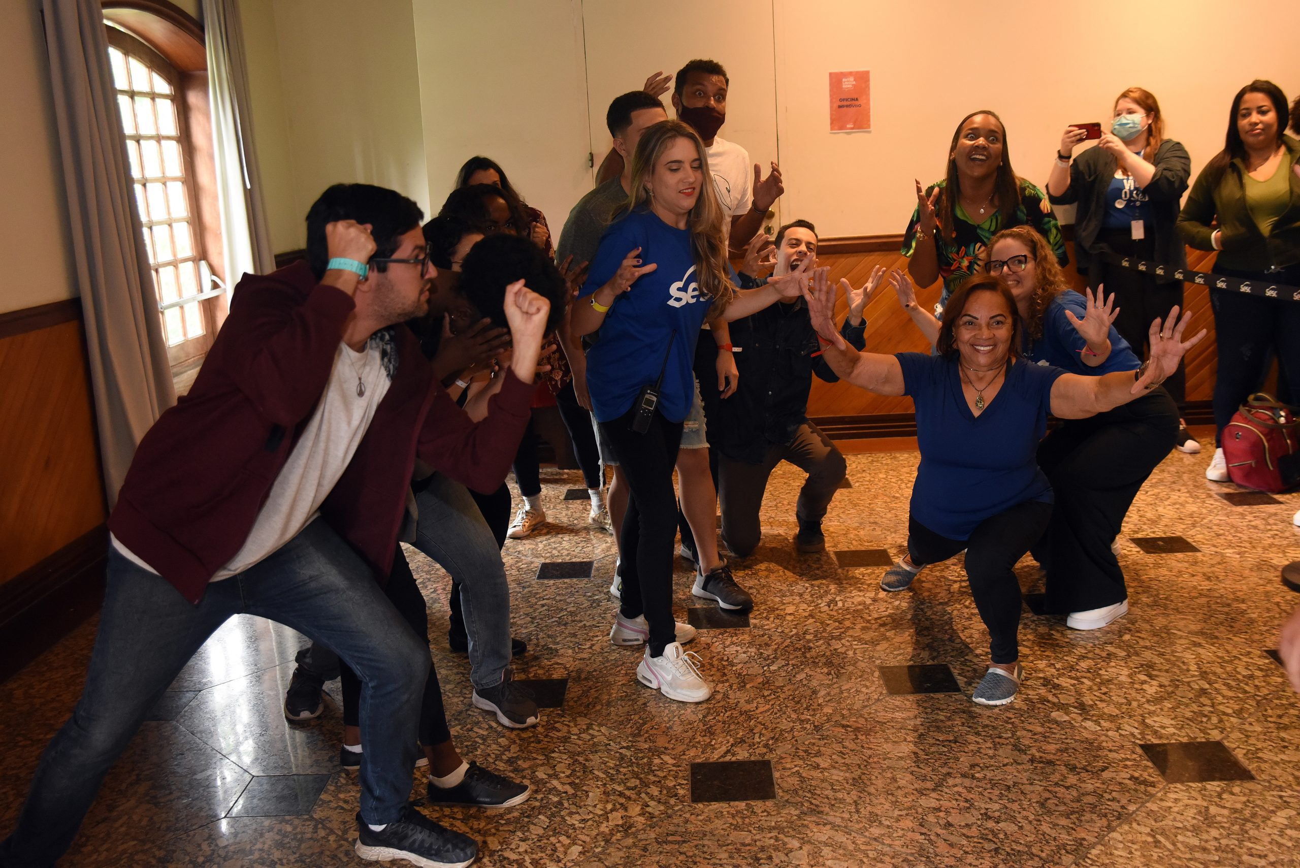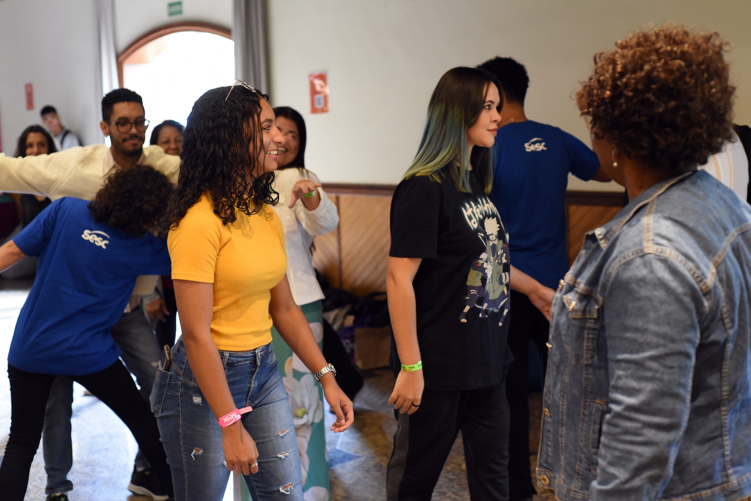 O improviso: A proposta desta oficina foi convidar os participantes a pensarem como a vida é imprevisível a partir da a expressão corporal e interação entre todos os participantes.