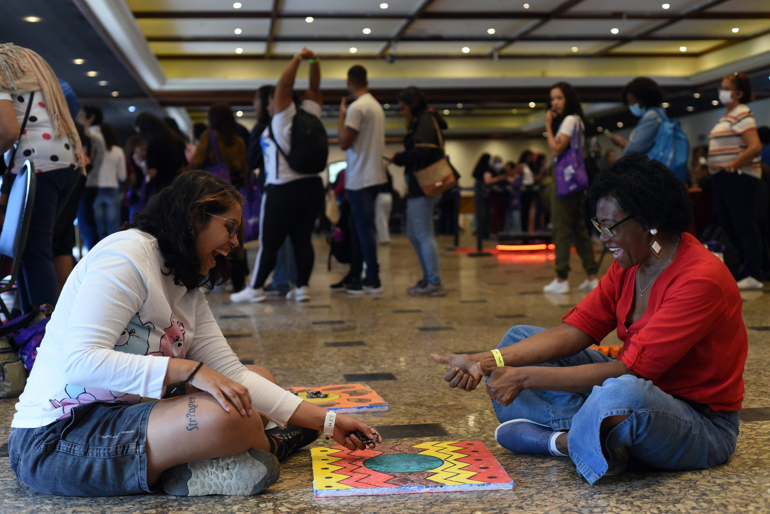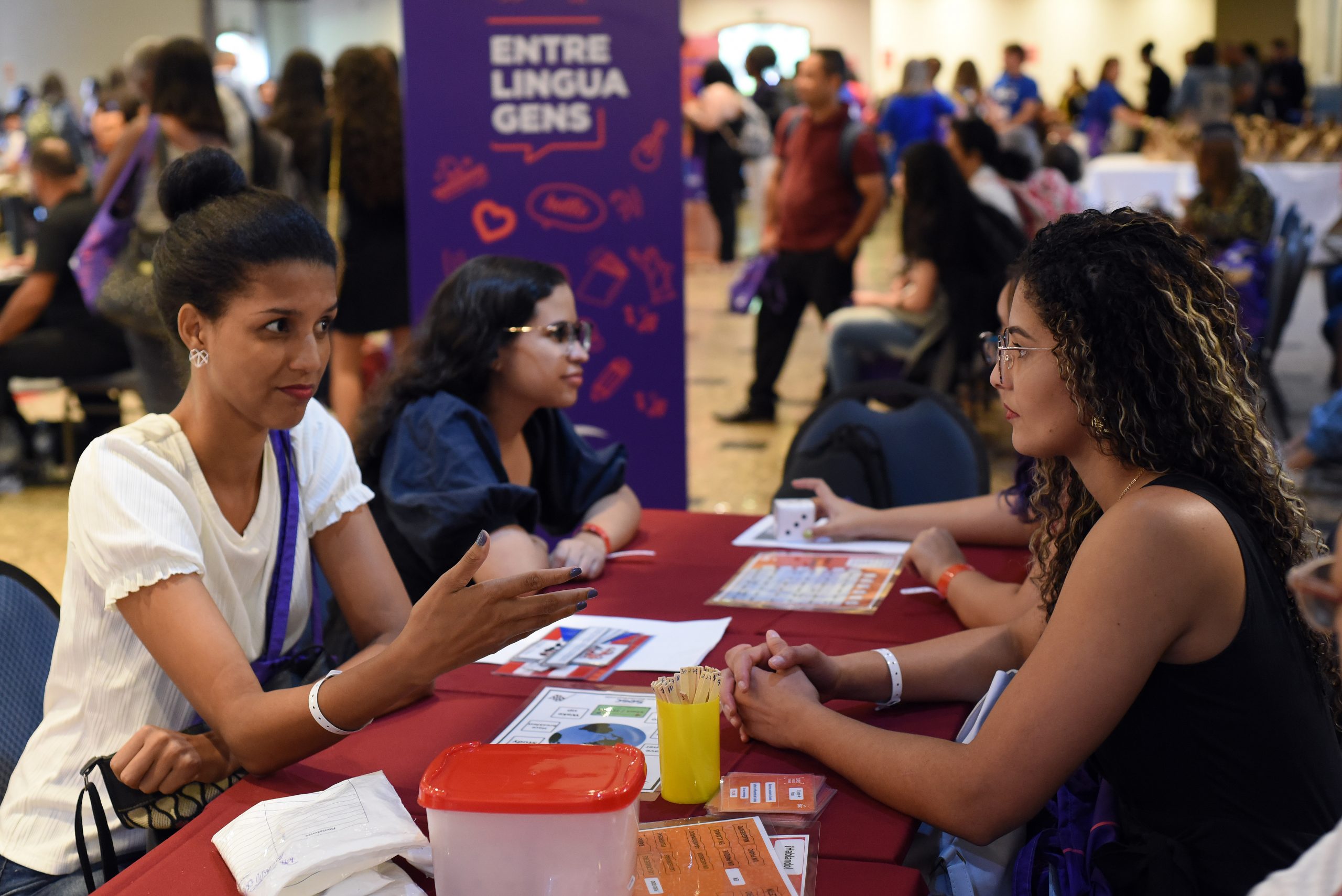 Jogos de tabuleiro: Com jogos de tabuleiro em língua estrangeira, os participantes puderam se divertir, além de praticar o idioma, fomentando a coletividade e a colaboração.