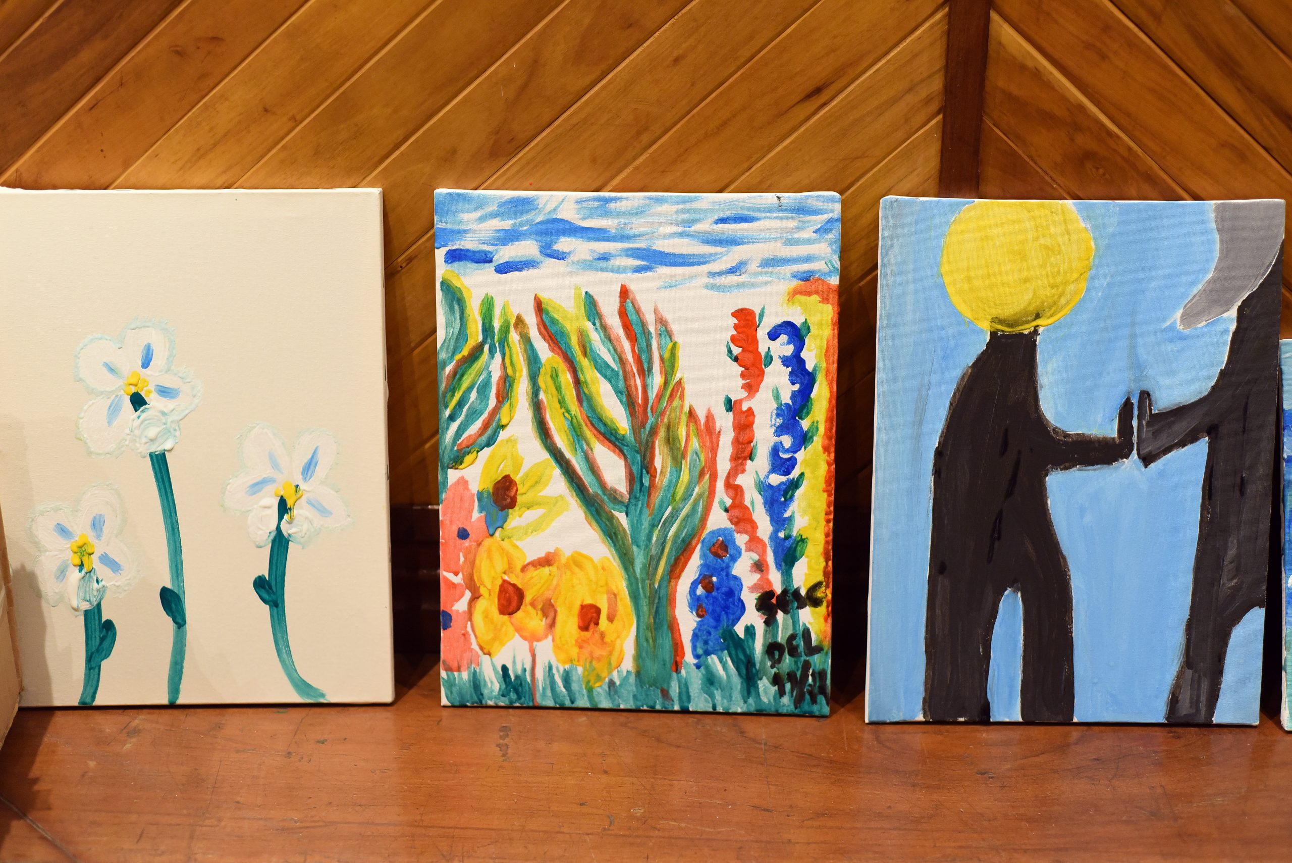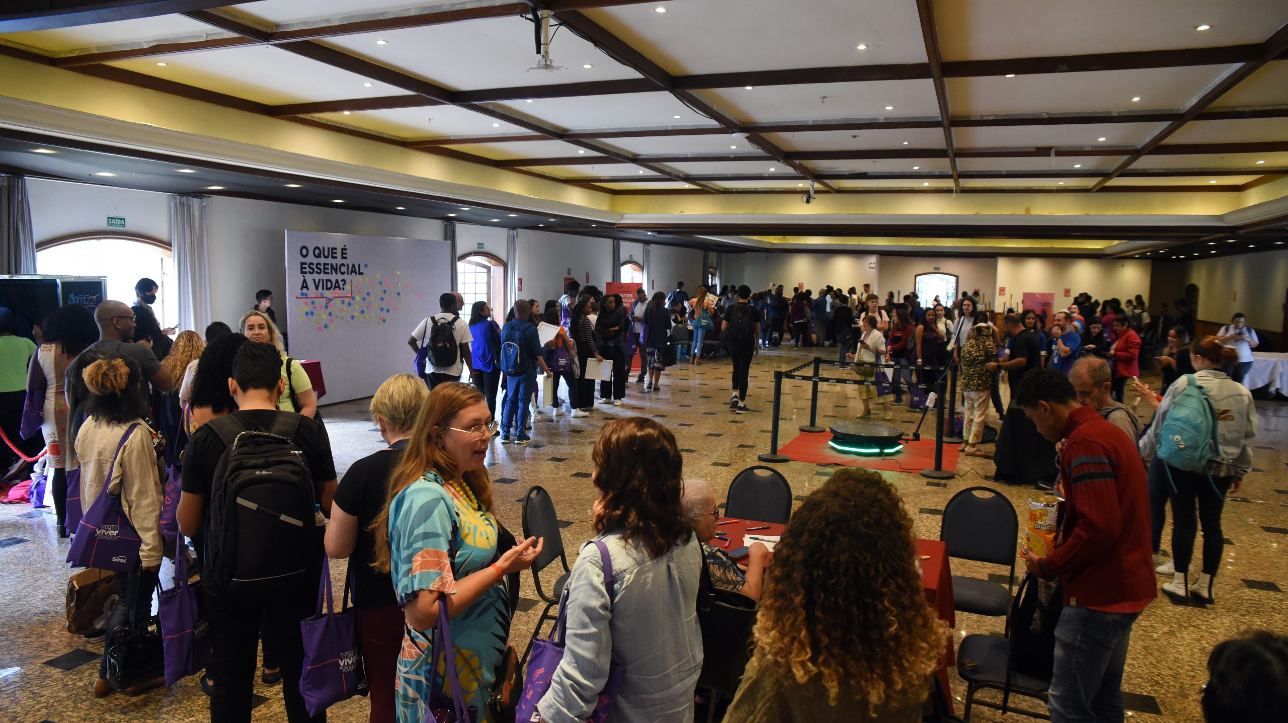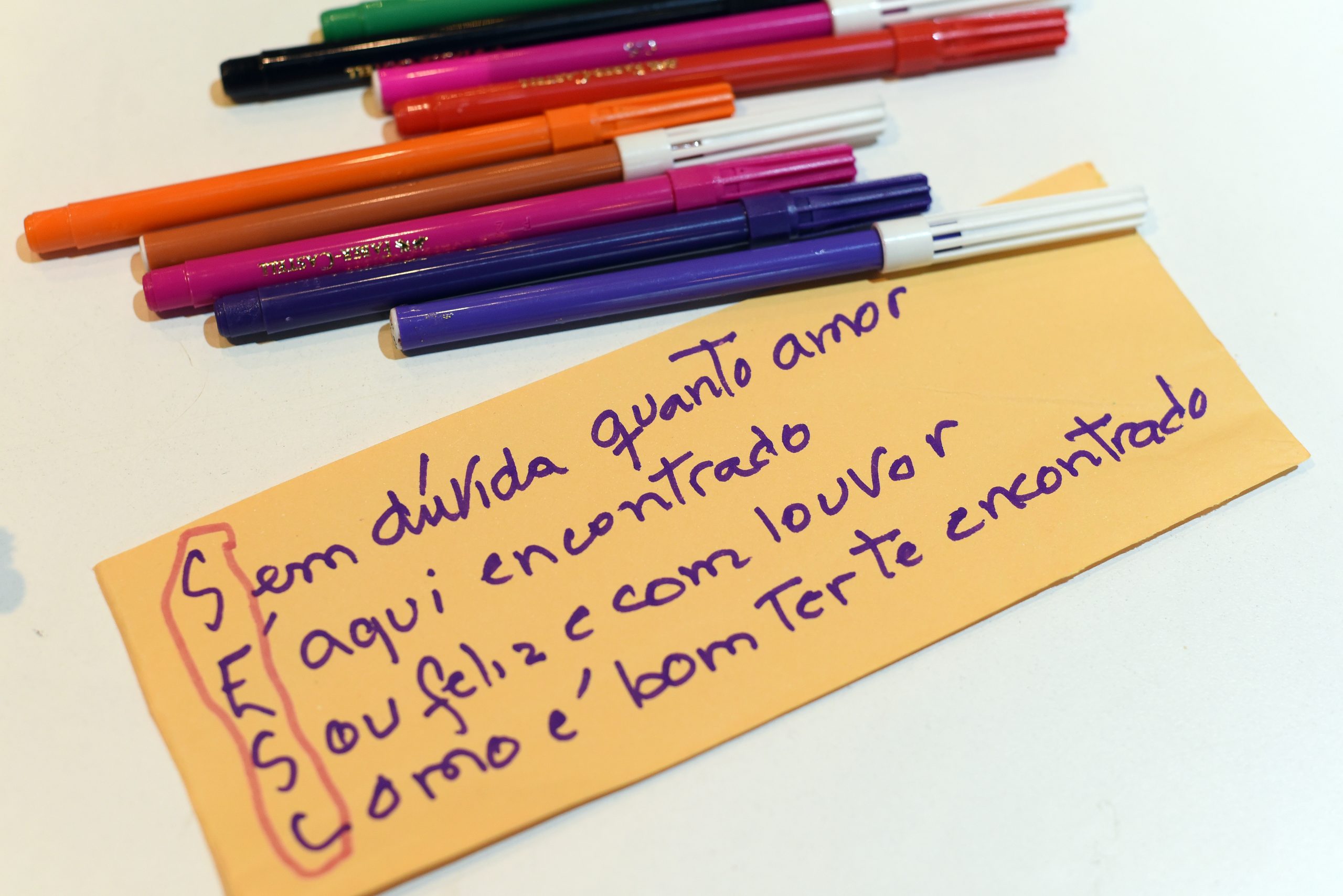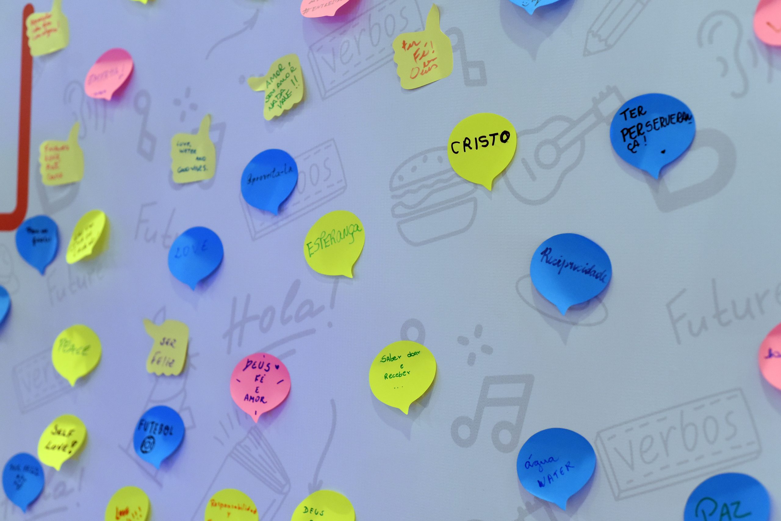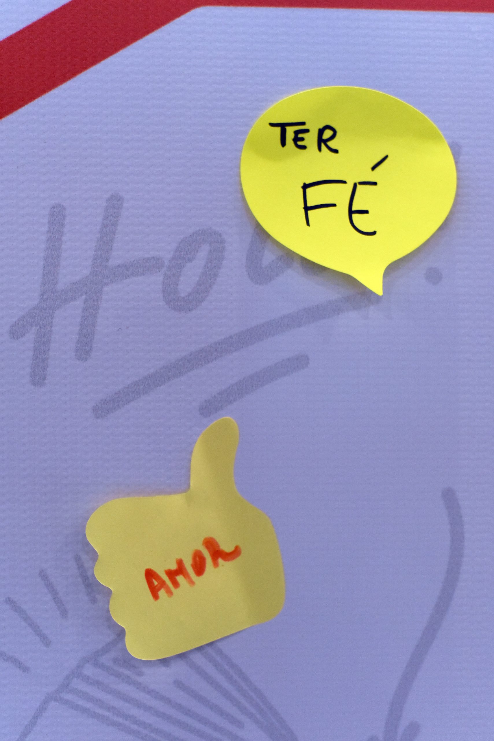 O que é essencial à vida? Um grande mural foi construído a partir do que é essencial para cada um. Sua elaboração foi inspirada nos quadrinhos do Armandinho, em que o personagem diz que o essencial à vida é o amor.