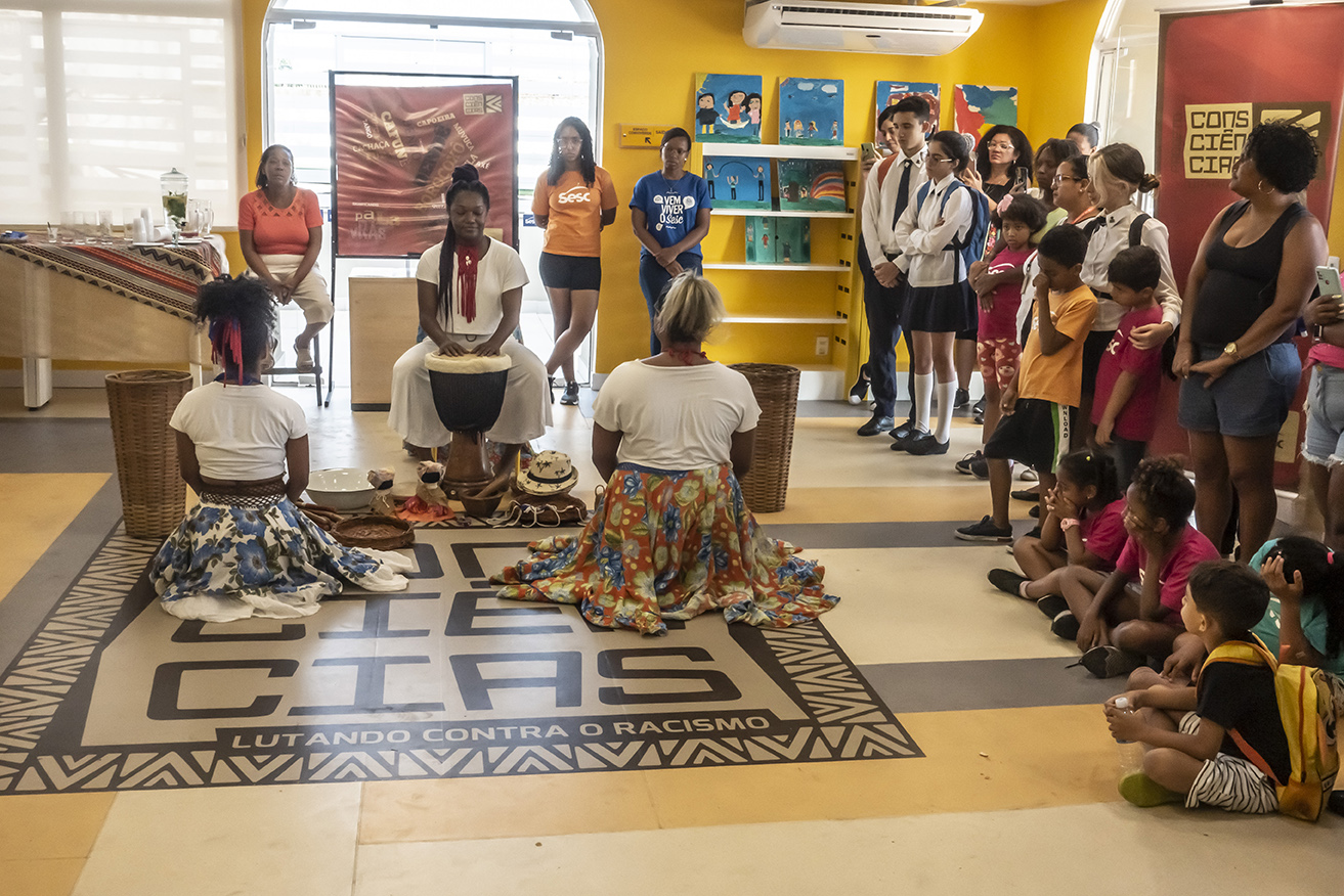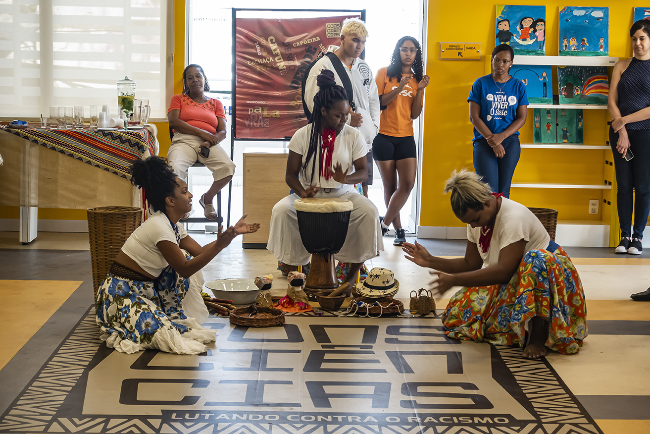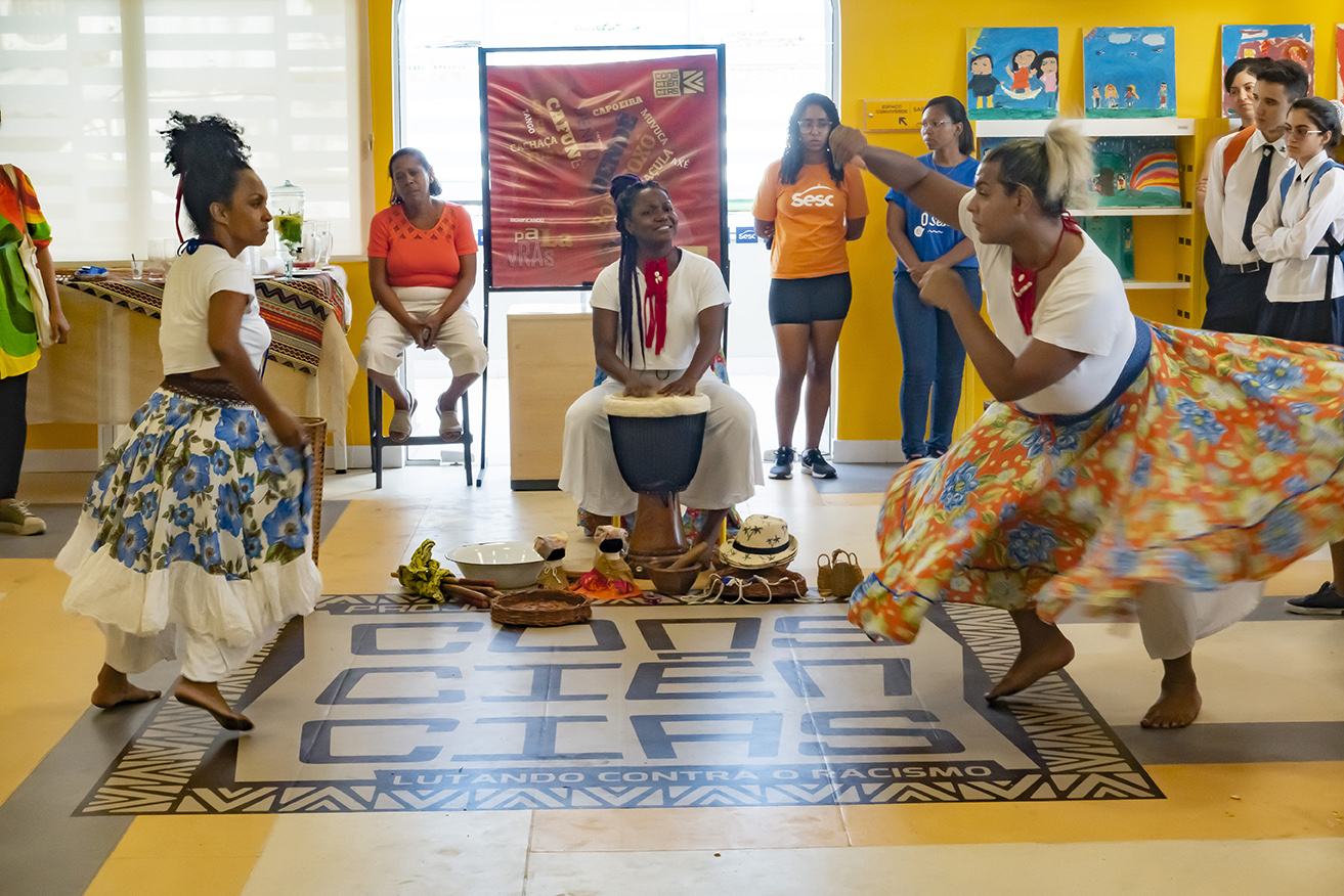 No último dia 08/12, a Gerência de Educação do Sesc RJ realizou o lançamento do e-book “O despertar das consciências: experiências no debate étnico-racial e antirracista em projetos de educação não formal”, publicação resultante do projeto CONSCIÊNCIAS na Unidade Madureira, que sistematizou as ações socioeducativas antirracistas no Sesc RJ e reuniu pensadores, artistas e cientistas em torno da temática antirracista.