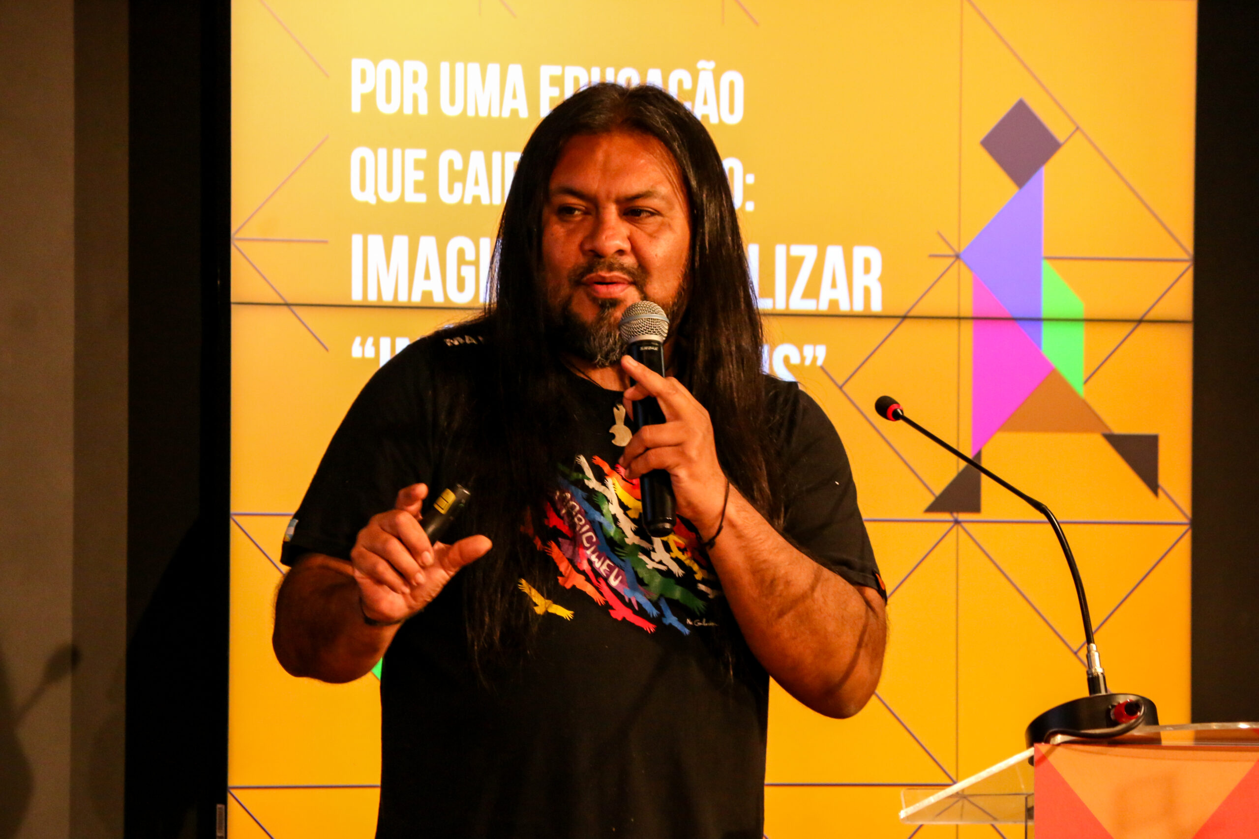 Entre os palestrantes estavam: Ailton Krenak (ativista do movimento socioambiental e de defesa dos direitos indígenas, filósofo, poeta e escritor brasileiro da etnia indígena crenaque), Donaldo Macedo (Prof. Dr. Universidade de Massachusetts – Boston/EUA), Manuel Sarmento (Prof. Dr. Universidade do Minho/Portugal) e Walter Kohan (Prof. Dr. UERJ).