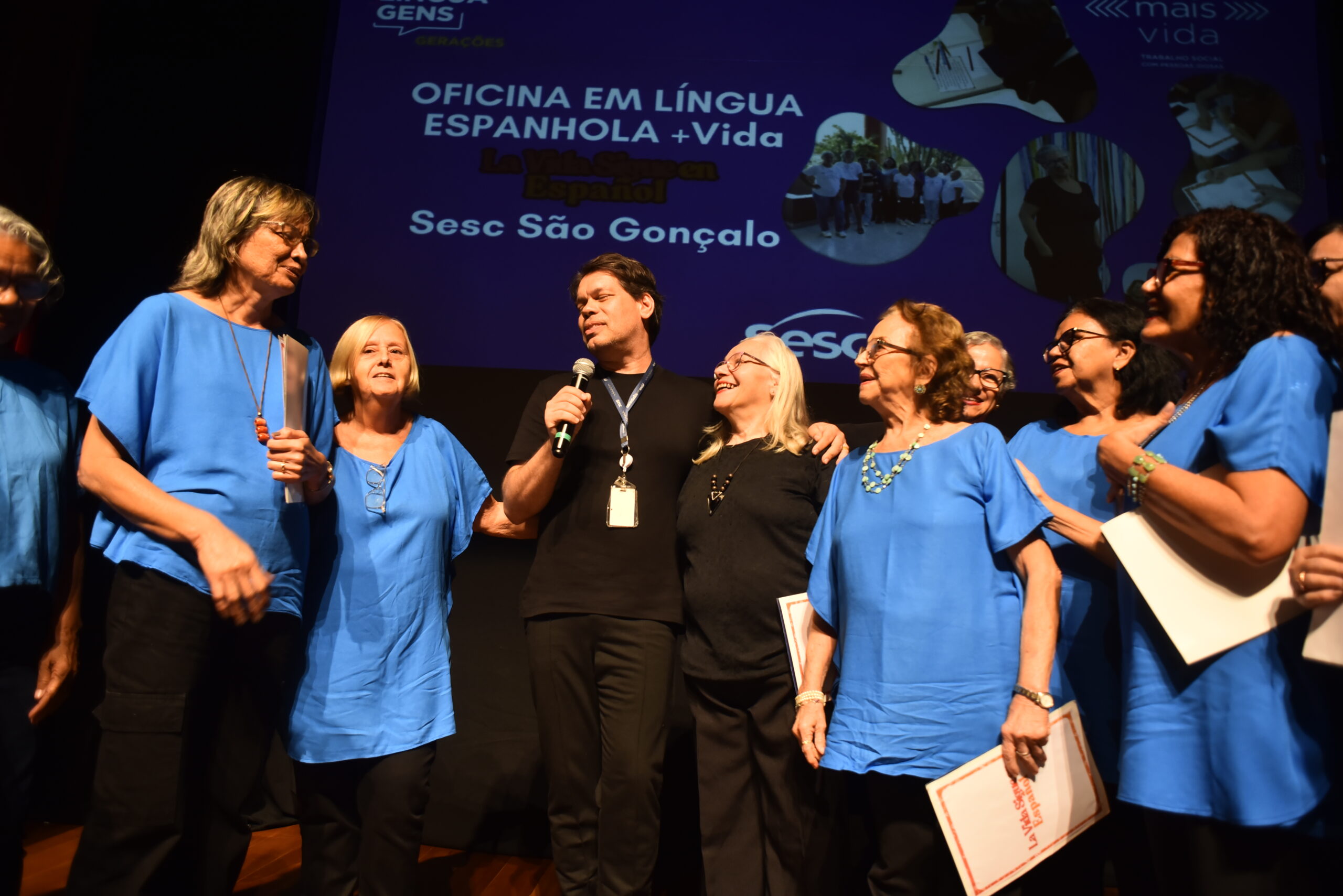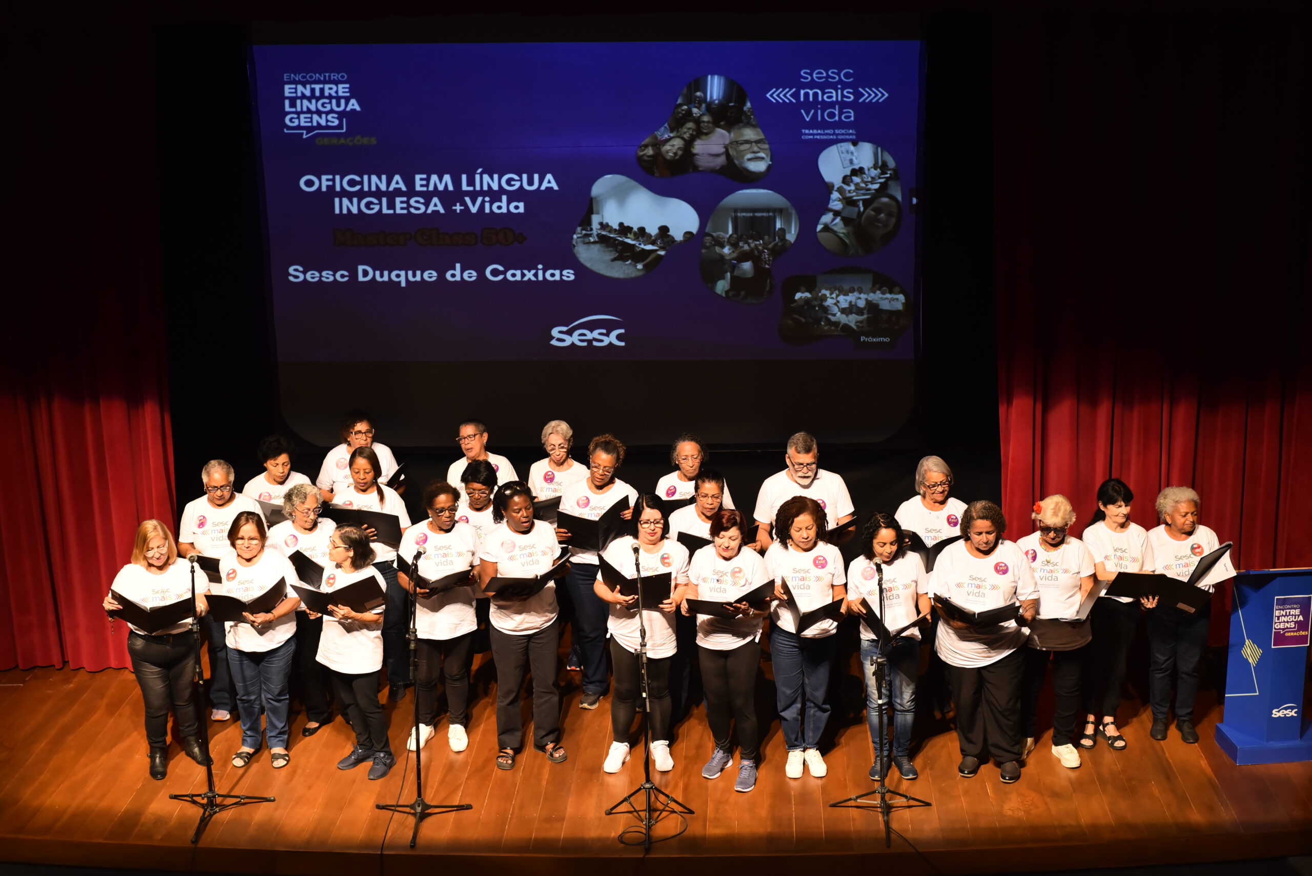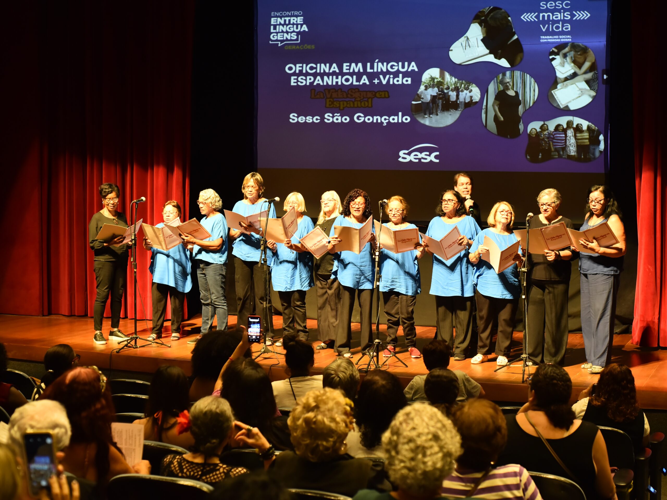 Na tarde de 27 de agosto de 2025, o Teatro da Unidade Sesc São Gonçalo brilhou com um público completo, alegre e emocionado. O Encontro Entrelinguagens – Gerações foi muito mais que um evento: tornou-se um espaço sensível de diálogo entre os grupos +Vida das Unidades São Gonçalo, Duque de Caxias e Madureira I, os adolescentes dos Cursos de Imersão Teens e o público presente.