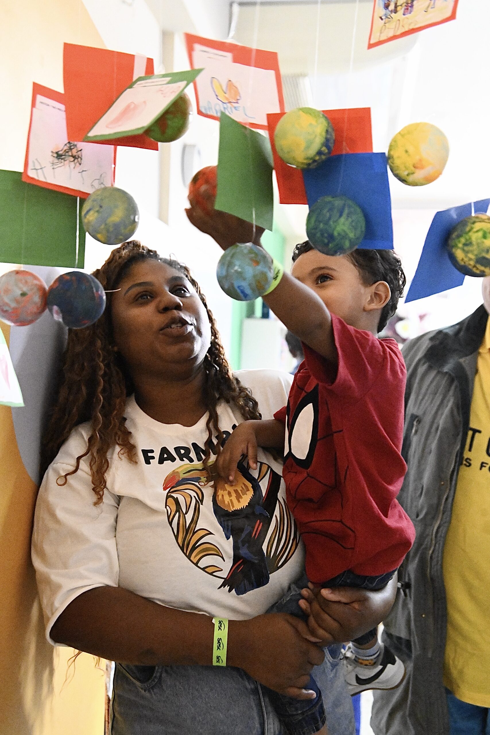 Na visita guiada às salas de referência, as famílias conheceram os trabalhos produzidos pelas próprias crianças, que refletiram sensibilidade, diversidade de olhares e aprendizagens construídas no cotidiano escolar.