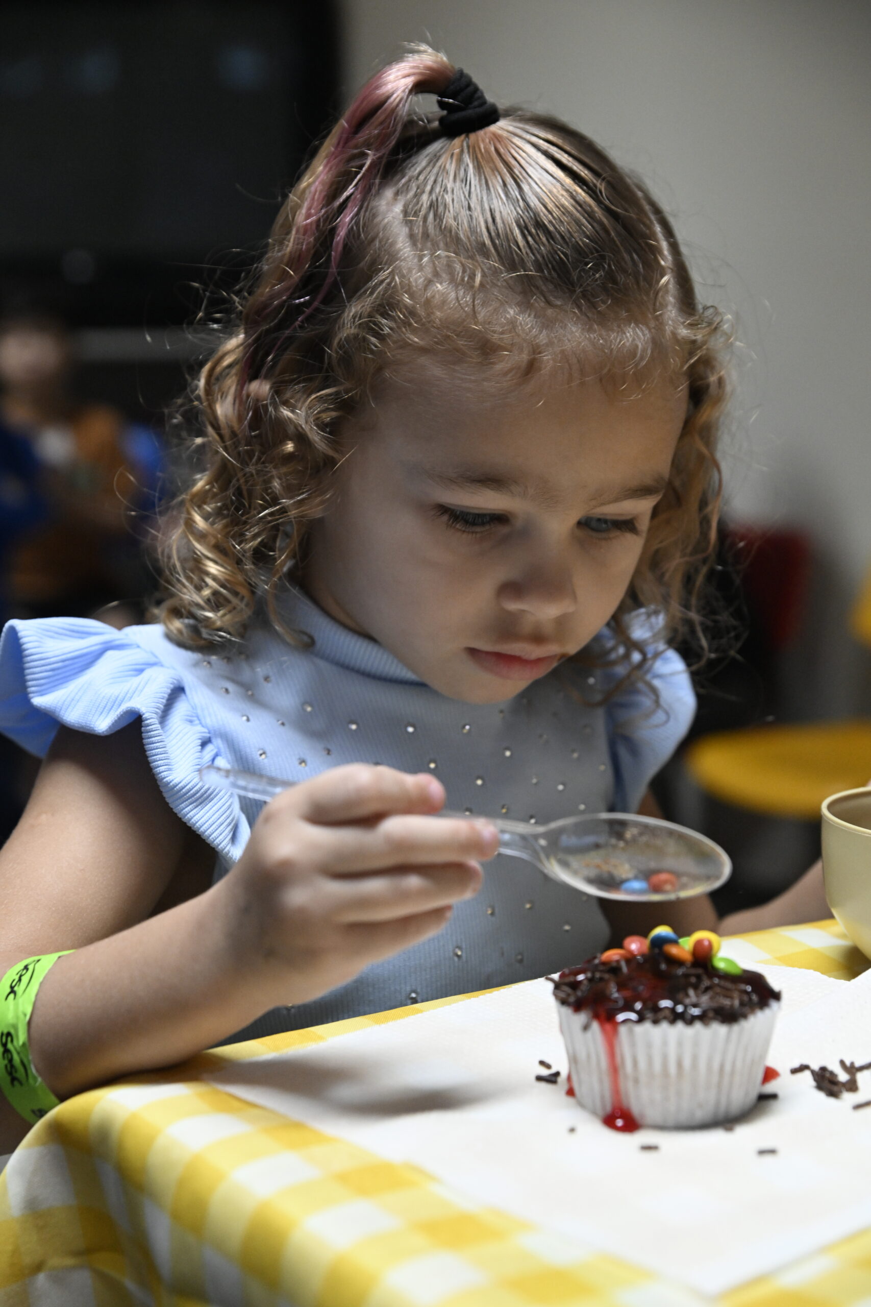 As atividades proporcionaram diferentes formas de expressão: uma animada Oficina de Pipoca, a Oficina de Cupcake, na qual cada criança decorou e saboreou seu doce, e a Oficina de Pintura Artística Facial, que estimulou imaginação e criatividade.