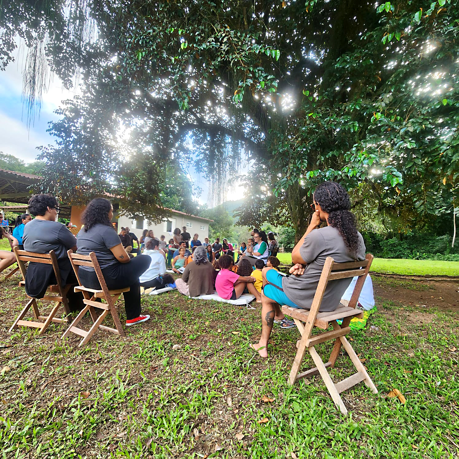 A leitura de livros inspirados na região, realizada sob a sombra de uma grande árvore, foi um momento à parte. Ouvir as histórias da autora campista Eleonora Sardinha Aguiar trouxe simbolismo, conhecimento e reflexões sobre os significados e as conexões com o ambiente visitado.