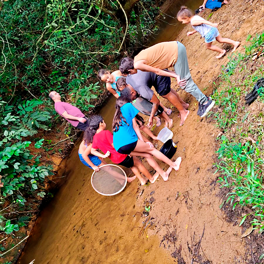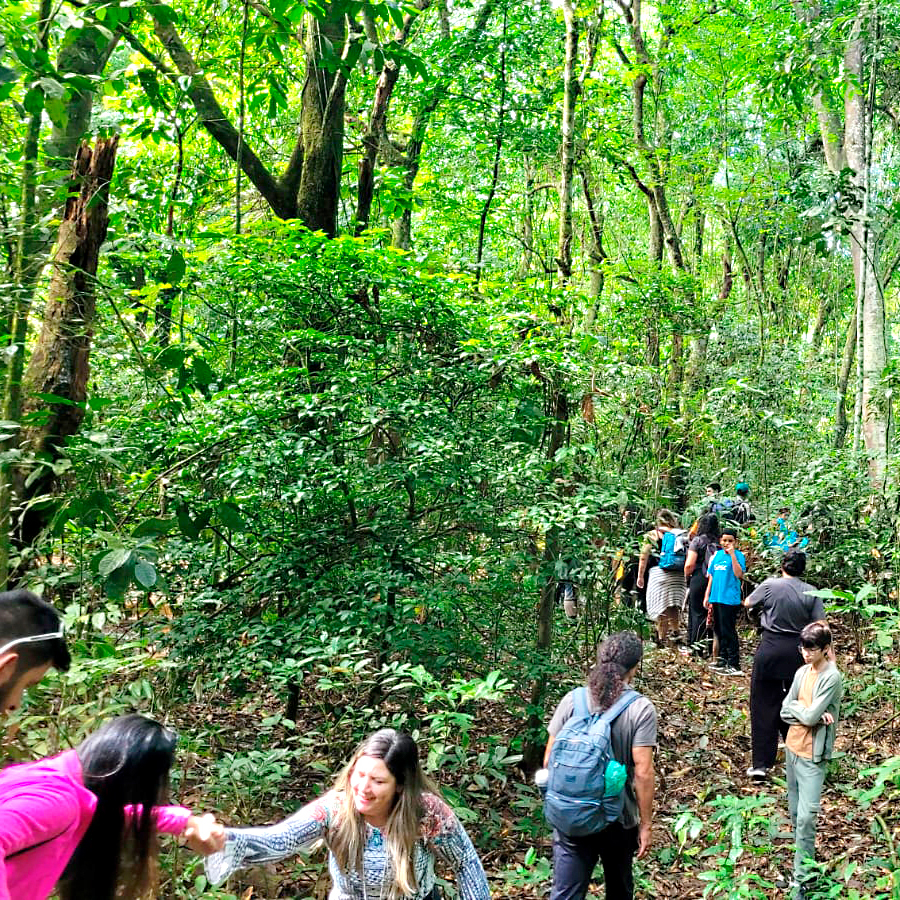 Durante o percurso, as famílias observaram e registraram espécies vegetais nativas, adquirindo maior consciência sobre a importância da preservação da mata como fonte essencial de geração e manutenção da vida. As crianças, em especial, compreenderam in loco o papel das árvores nos processos de contenção das águas e na qualidade do solo.