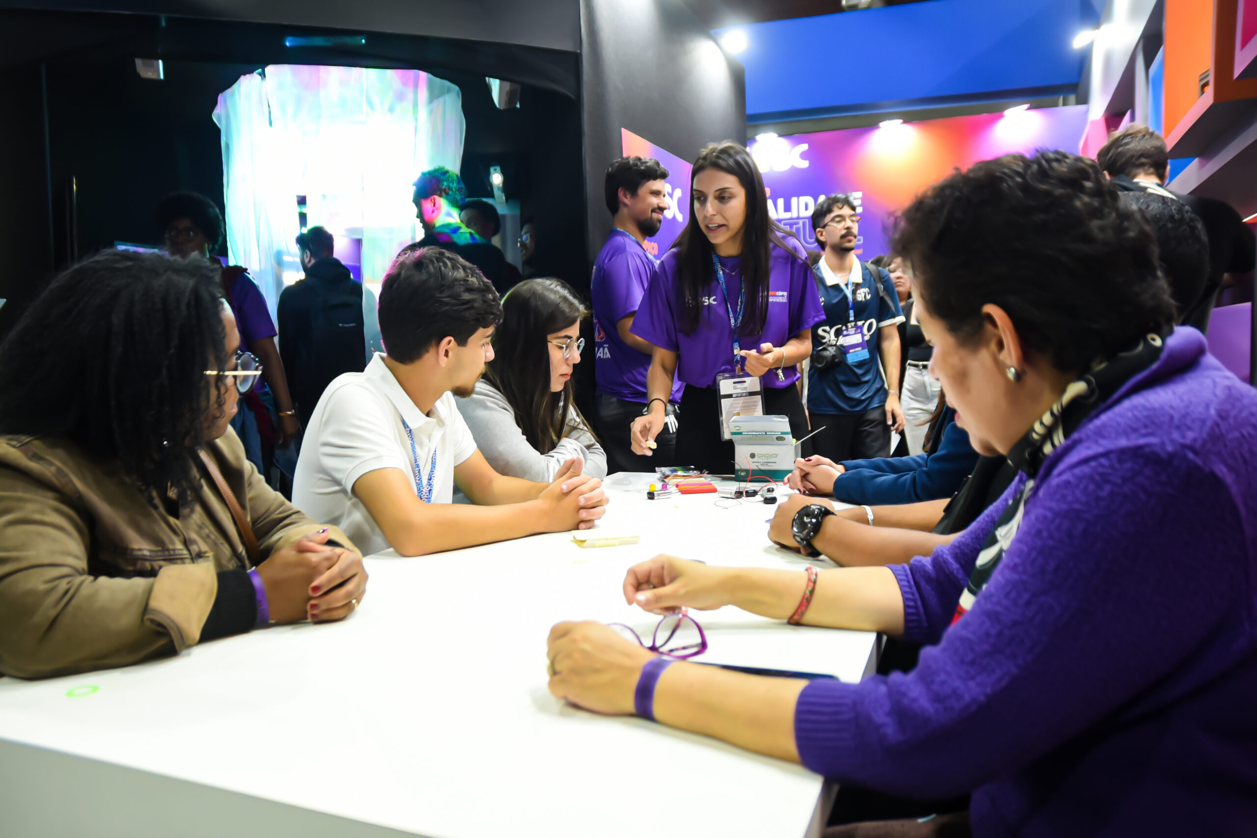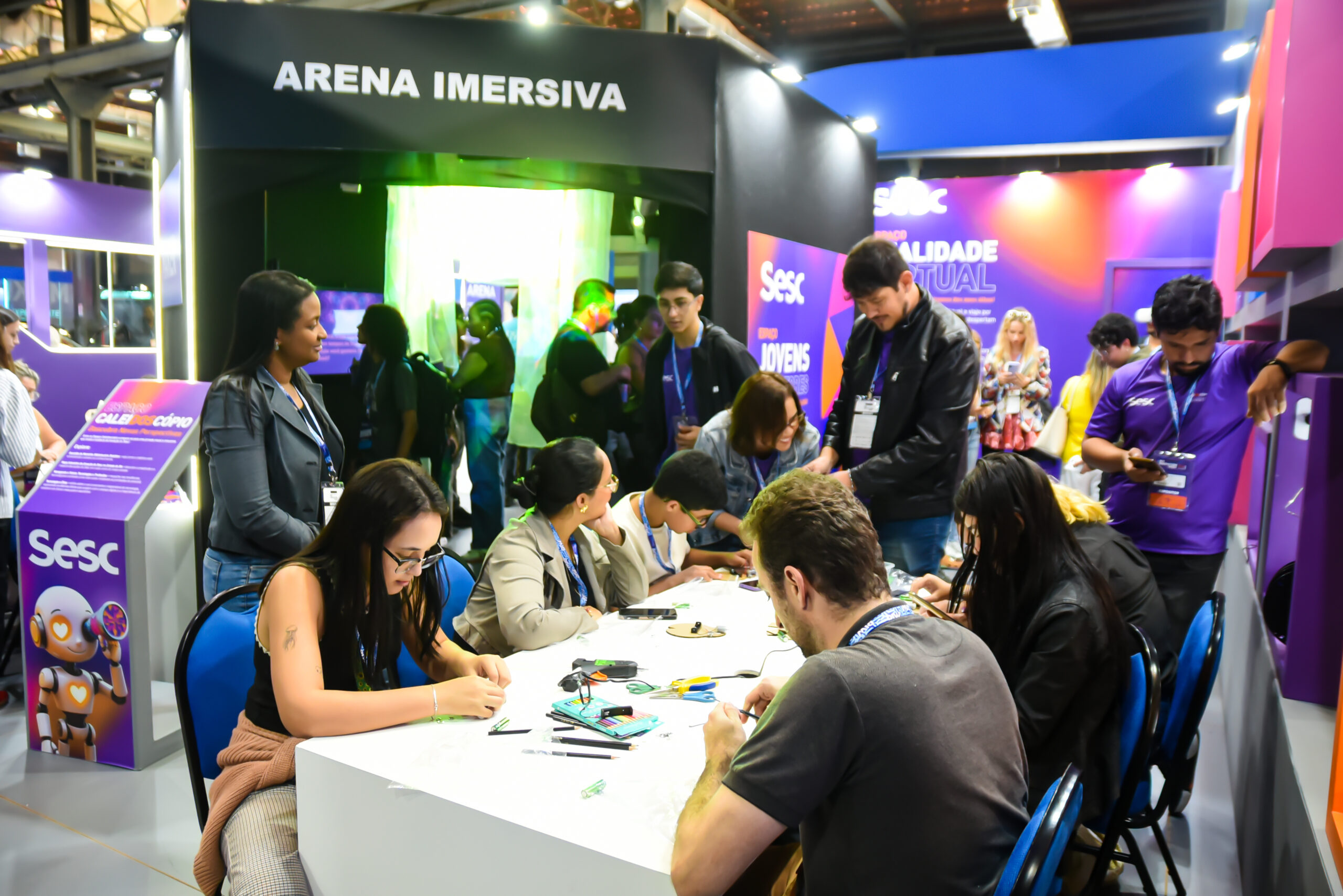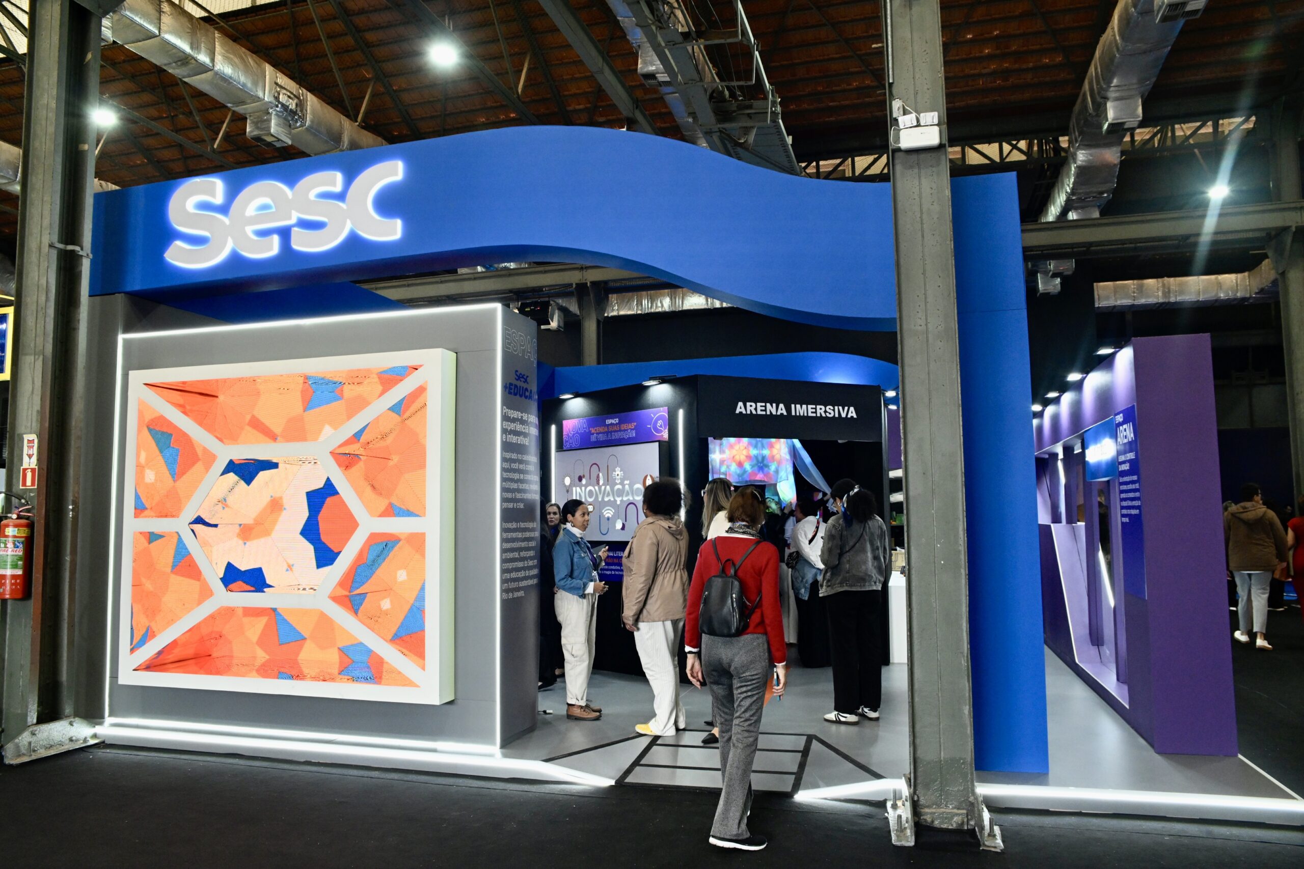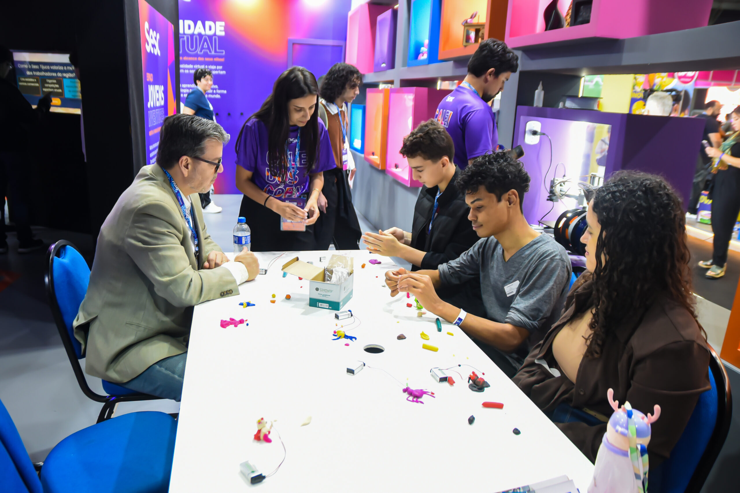A equipe do Sesc RJ, representada por Adriano Rocha, Diogo de Toledo, Carolina Moreira, Fabiana Villar e Maria Antônia Goulart, participou de cinco painéis realizados no Armazém do Kobra, no Palco Edutech. Os debates abordaram temáticas que relacionavam educação, tecnologia e bem-estar social.