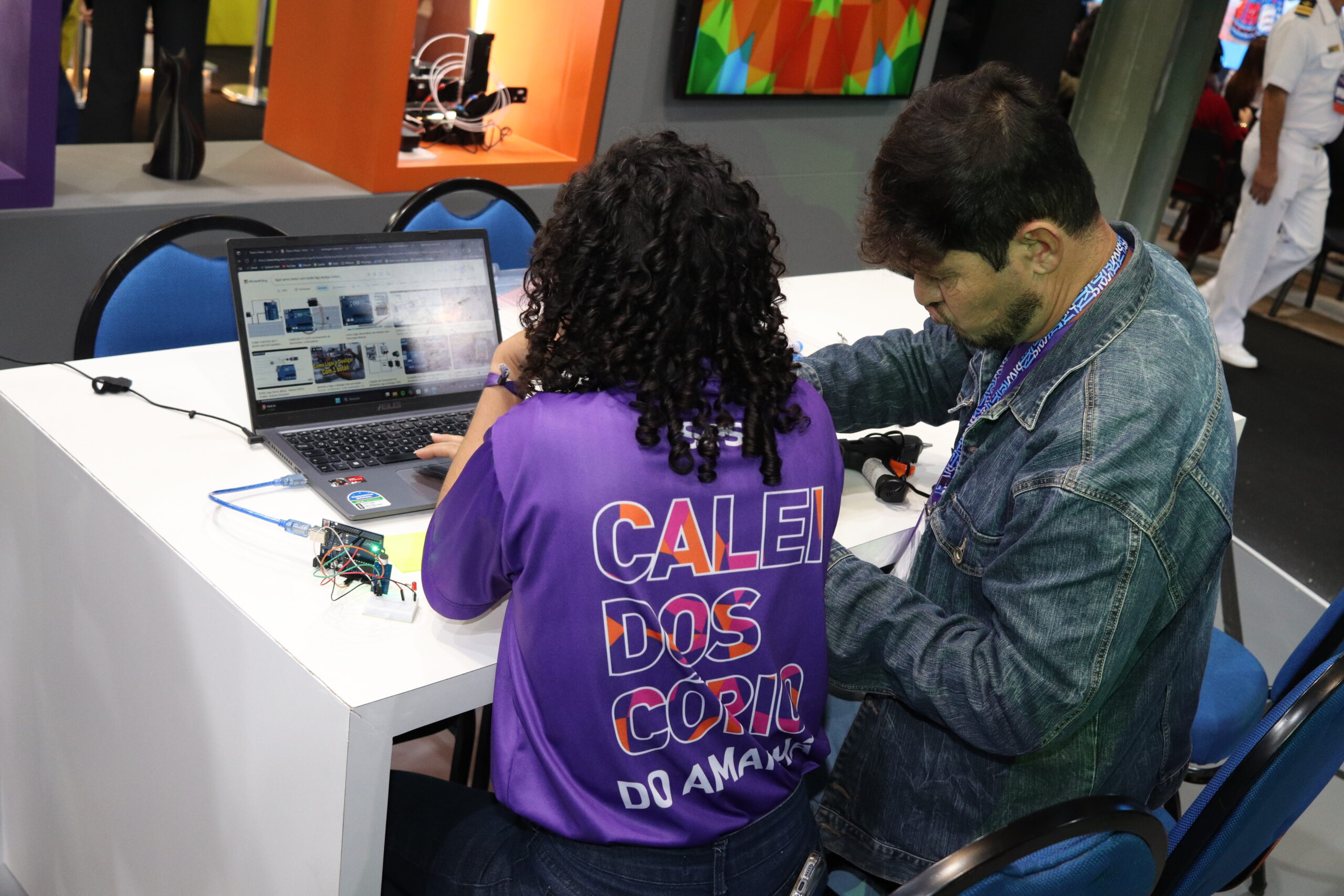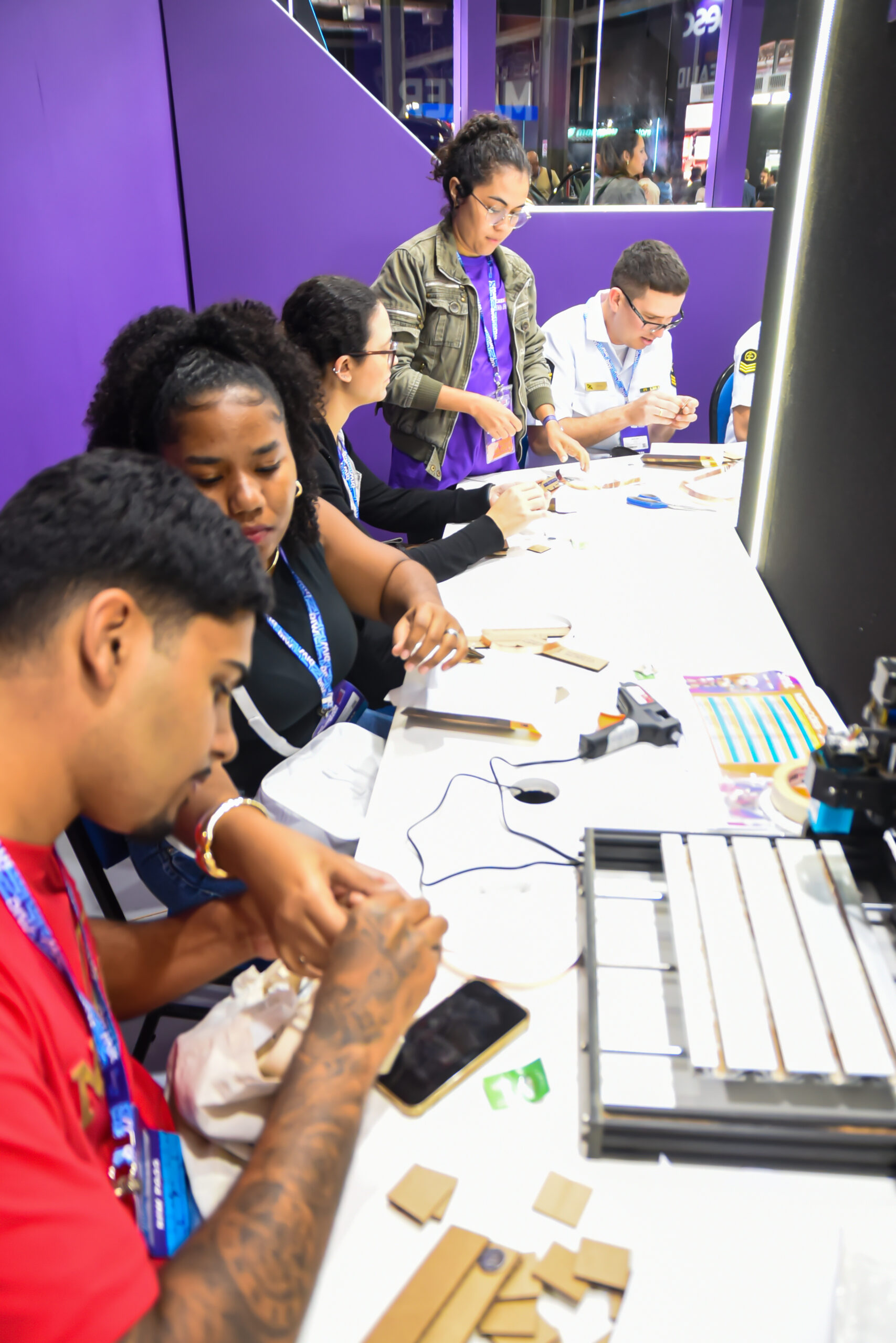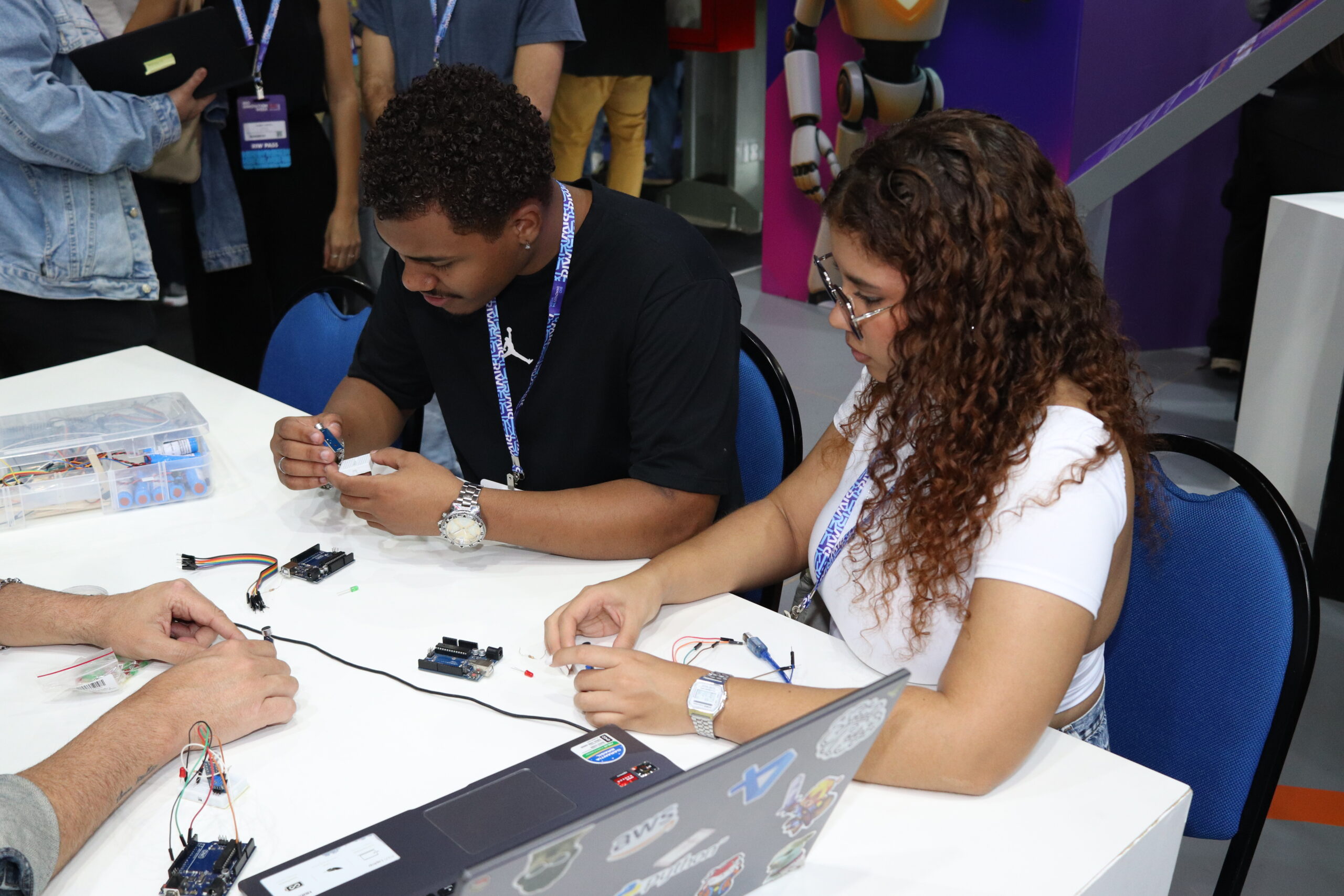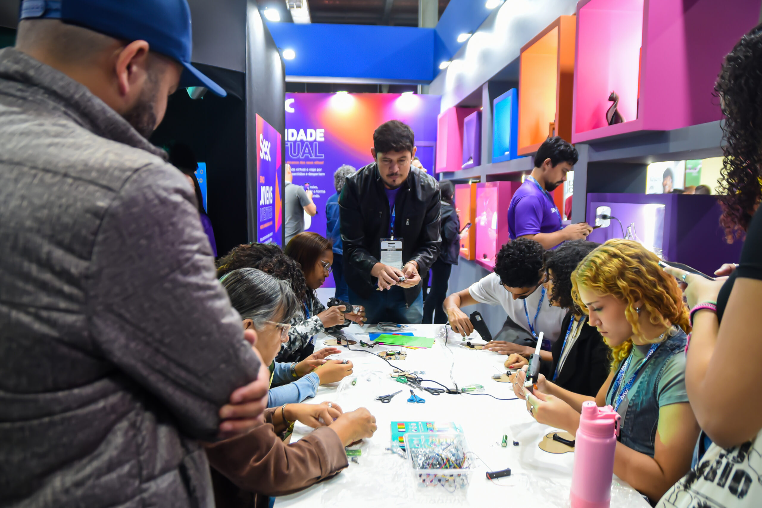 O estande contou com um espaço interativo onde os visitantes tiveram acesso a protótipos de robótica e à prática básica de fabricação digital.