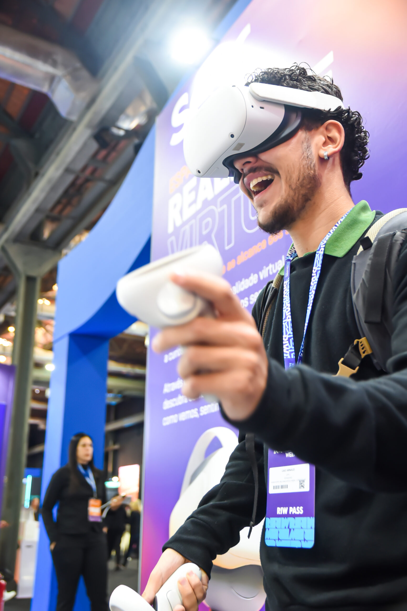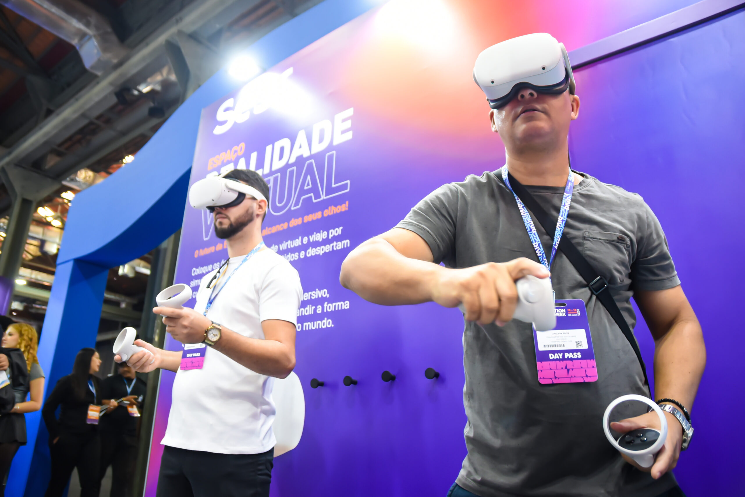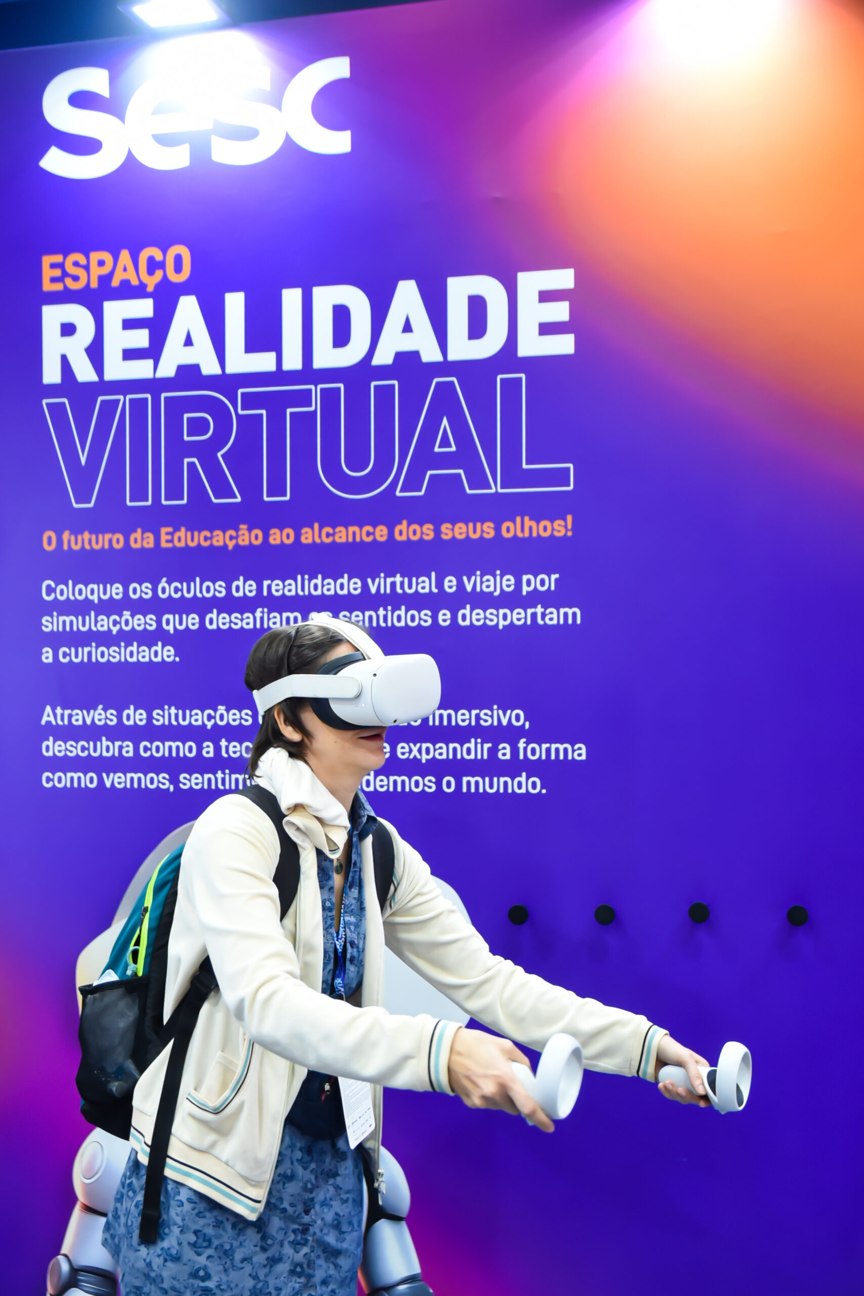 Com óculos de realidade virtual, os visitantes assumiram o papel de operadores de robôs em ambientes simulados, vivenciando de forma lúdica os desafios de carreiras emergentes ligadas à operação remota de máquinas no mundo digital.