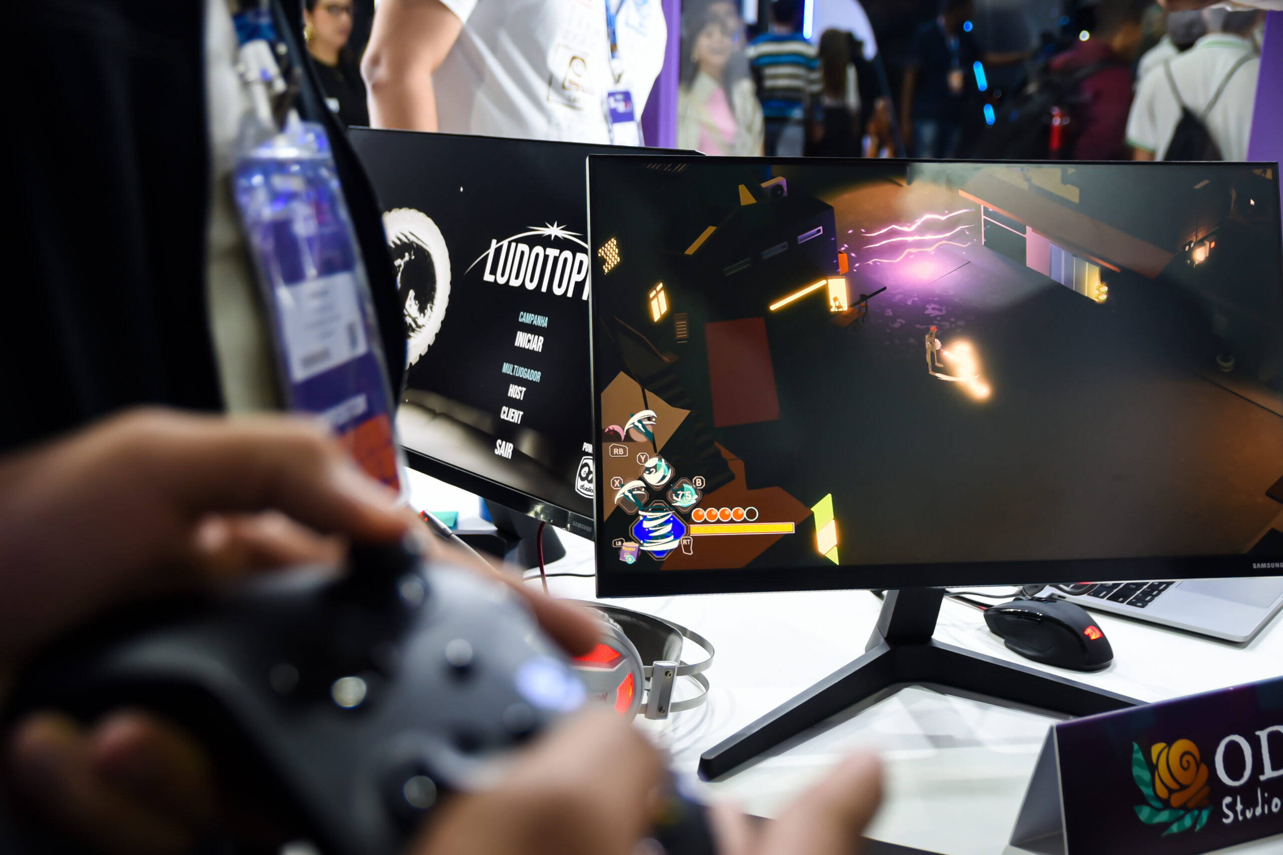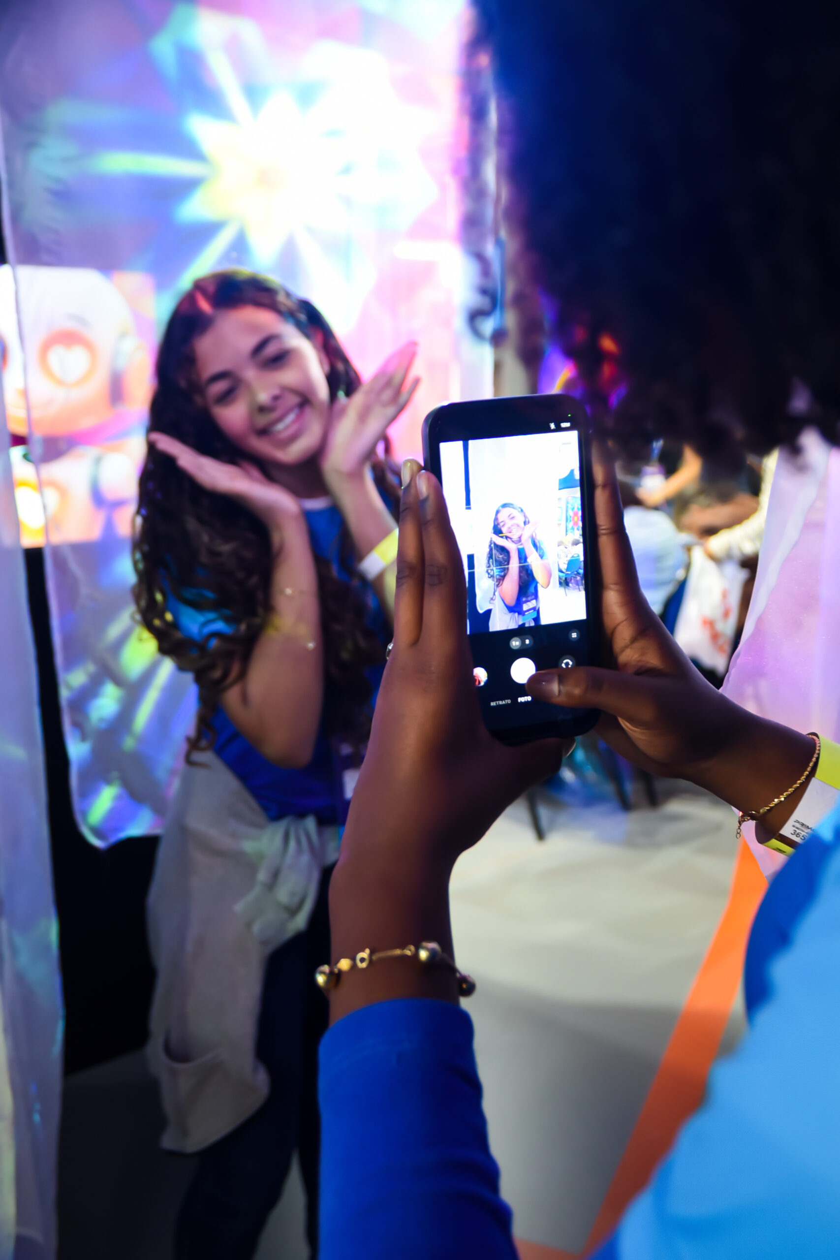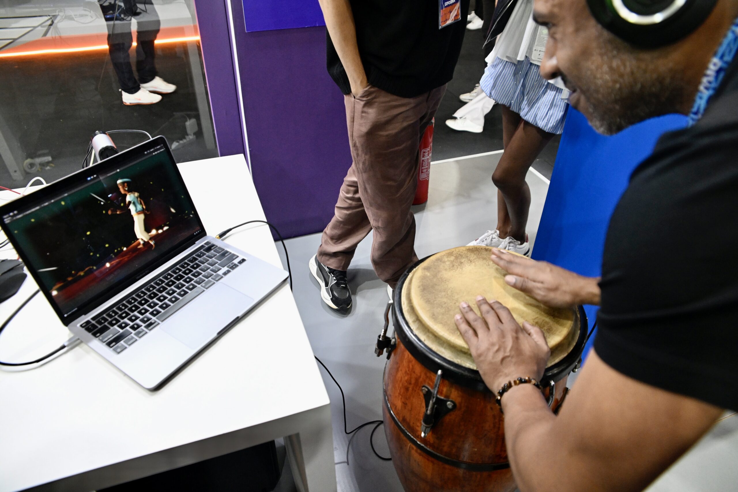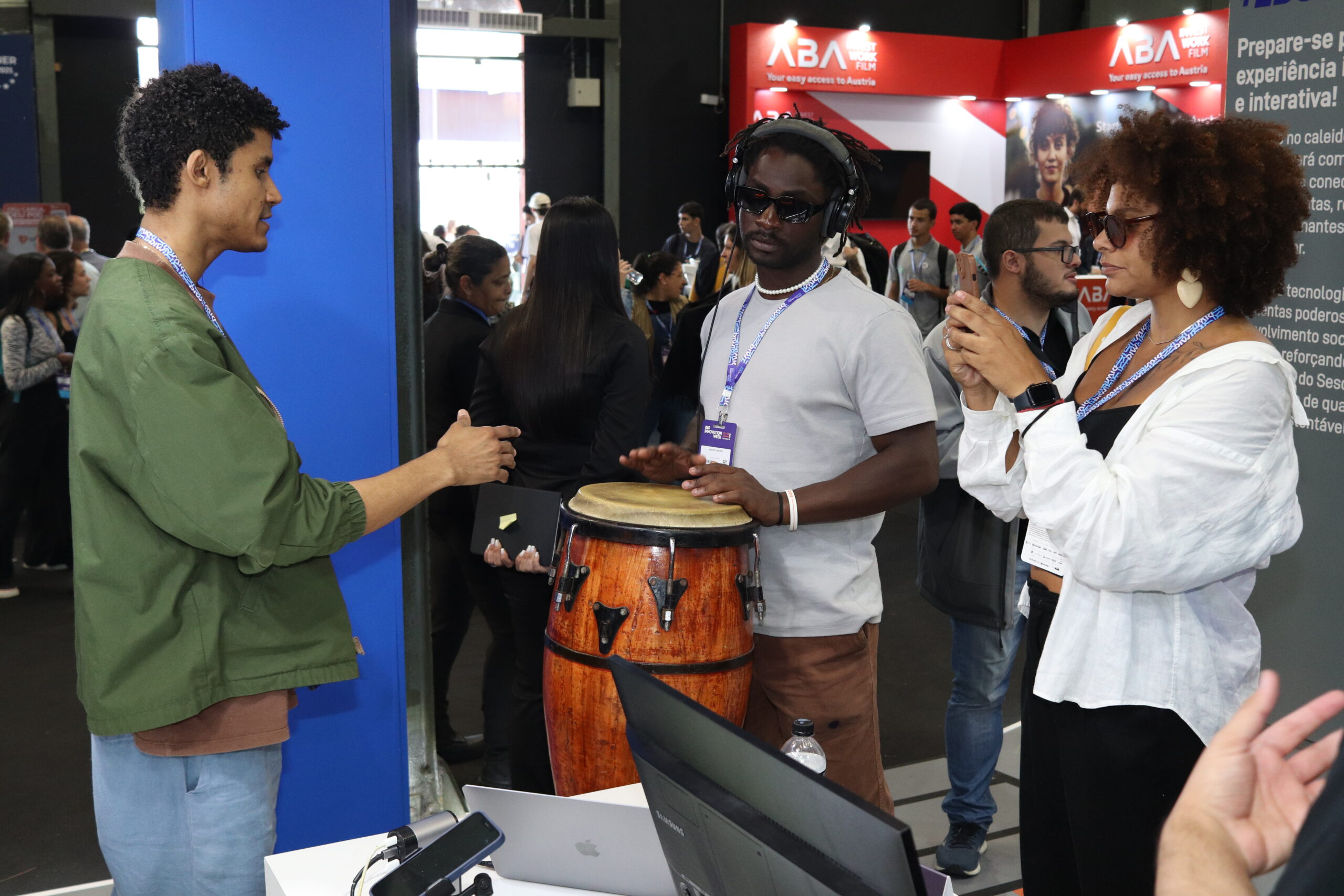 Espaço dedicado à gamificação, robótica e memória, onde ritmos e sensores “contavam” histórias ancestrais. Foi contabilizada uma quantidade expressiva de experimentos por dia, via dashboard, revelando o interesse do público pela relação entre tecnologia e ancestralidade.