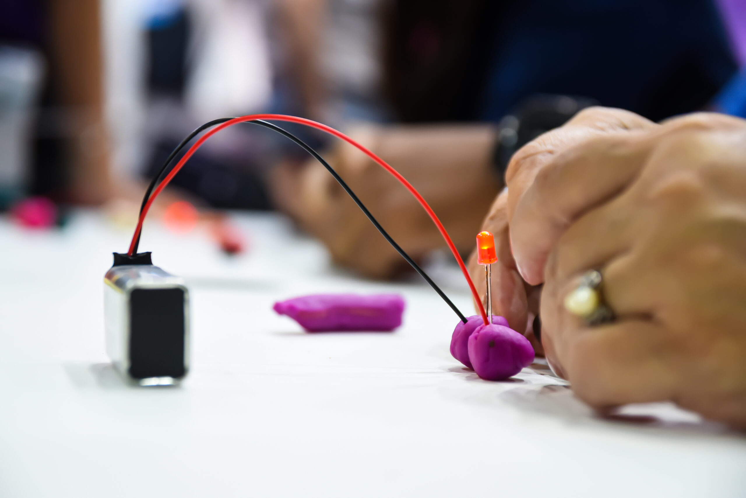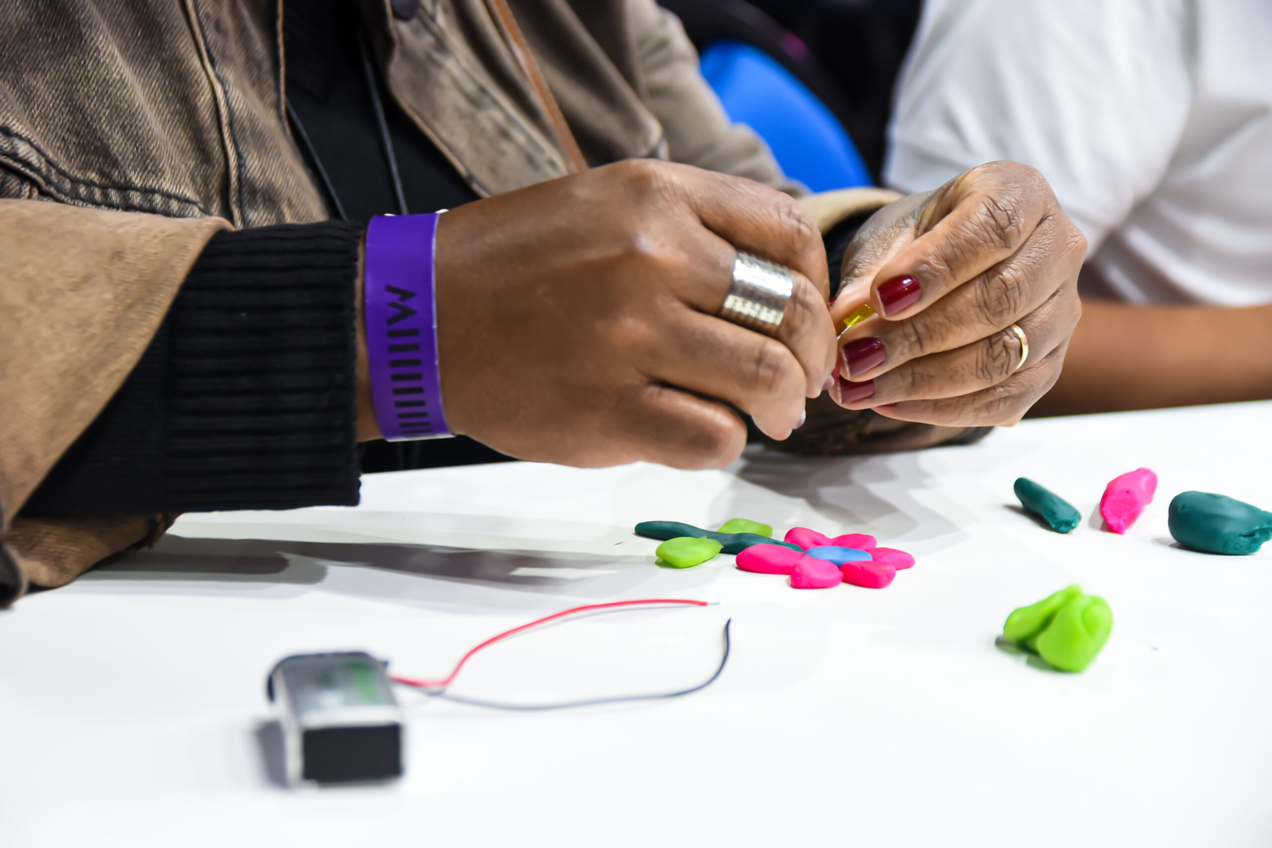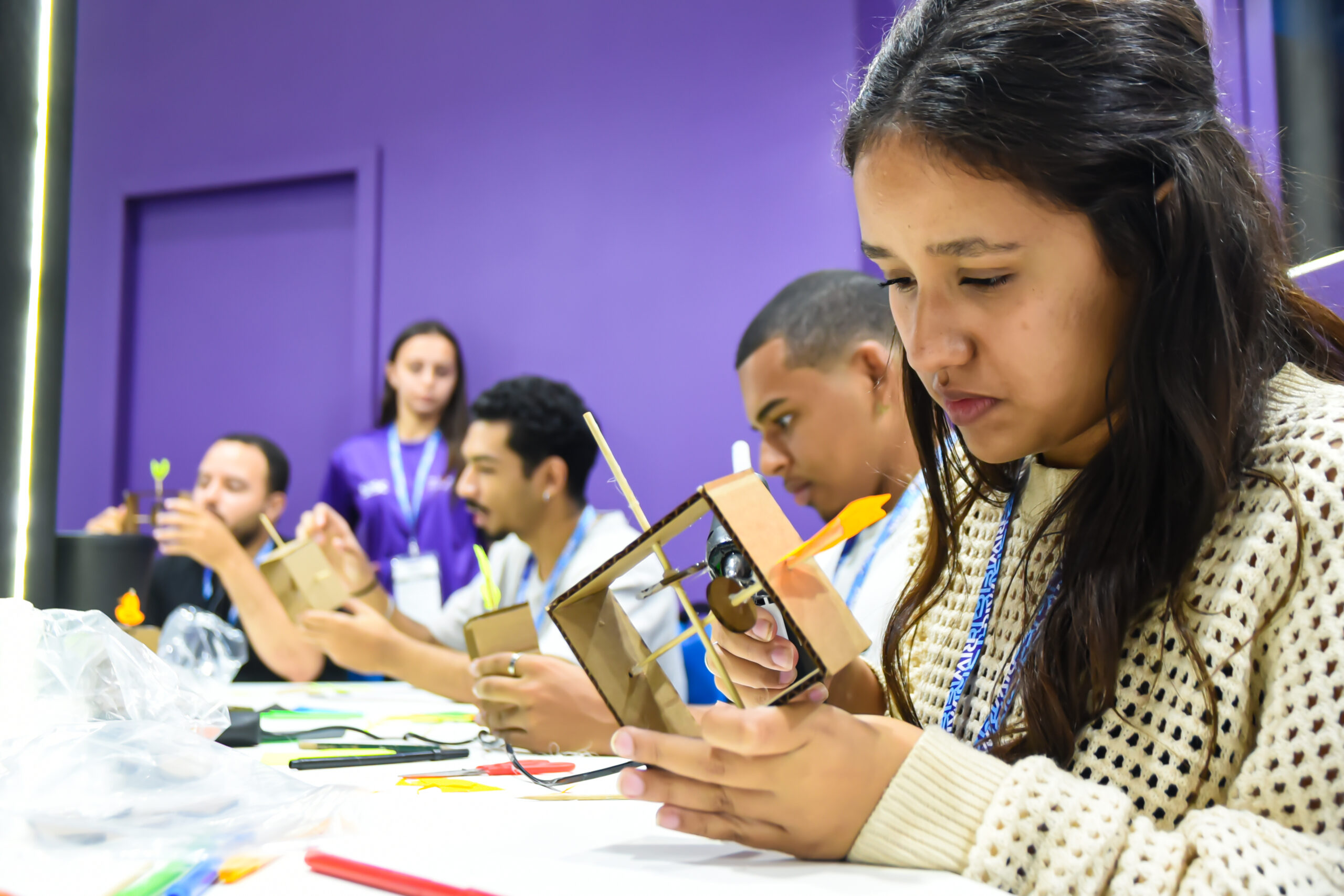 Atividade dedicada à exploração do universo da Ciência, Tecnologia, Engenharia, Artes e Matemática de forma prática e divertida. Os participantes criaram protótipos que transformaram ideias em realidade, demonstrando como é possível conduzir energia por meio de materiais simples.