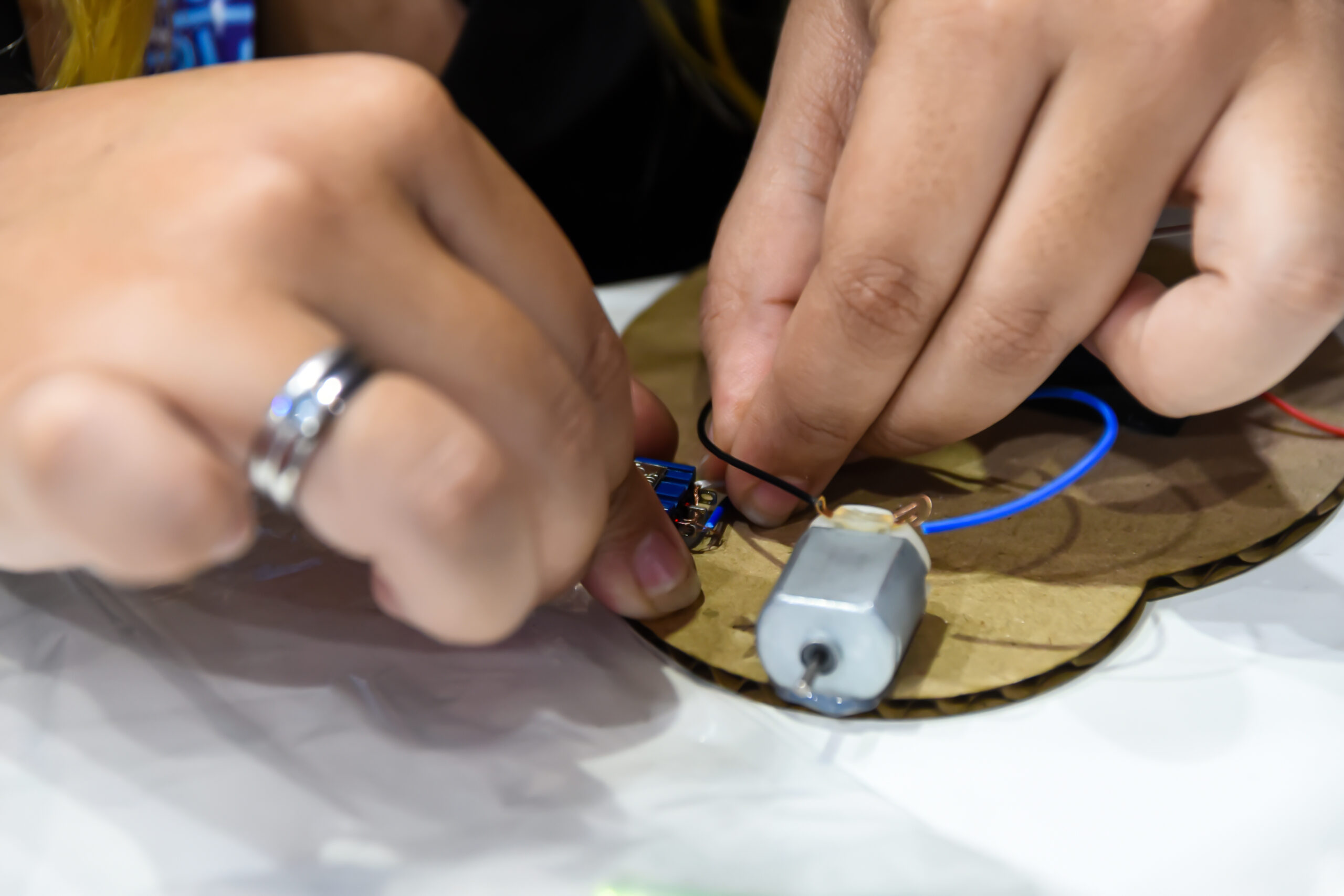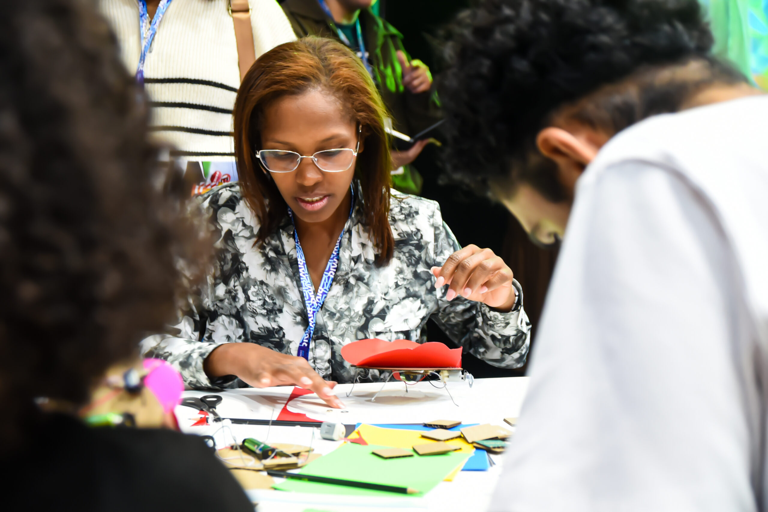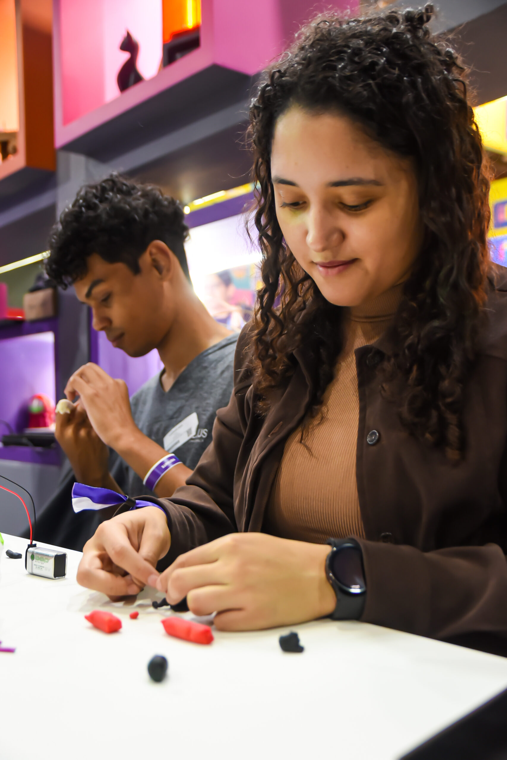 Atividade dedicada à exploração do universo da Ciência, Tecnologia, Engenharia, Artes e Matemática de forma prática e divertida. Os participantes criaram protótipos que transformaram ideias em realidade, demonstrando como é possível conduzir energia por meio de materiais simples.