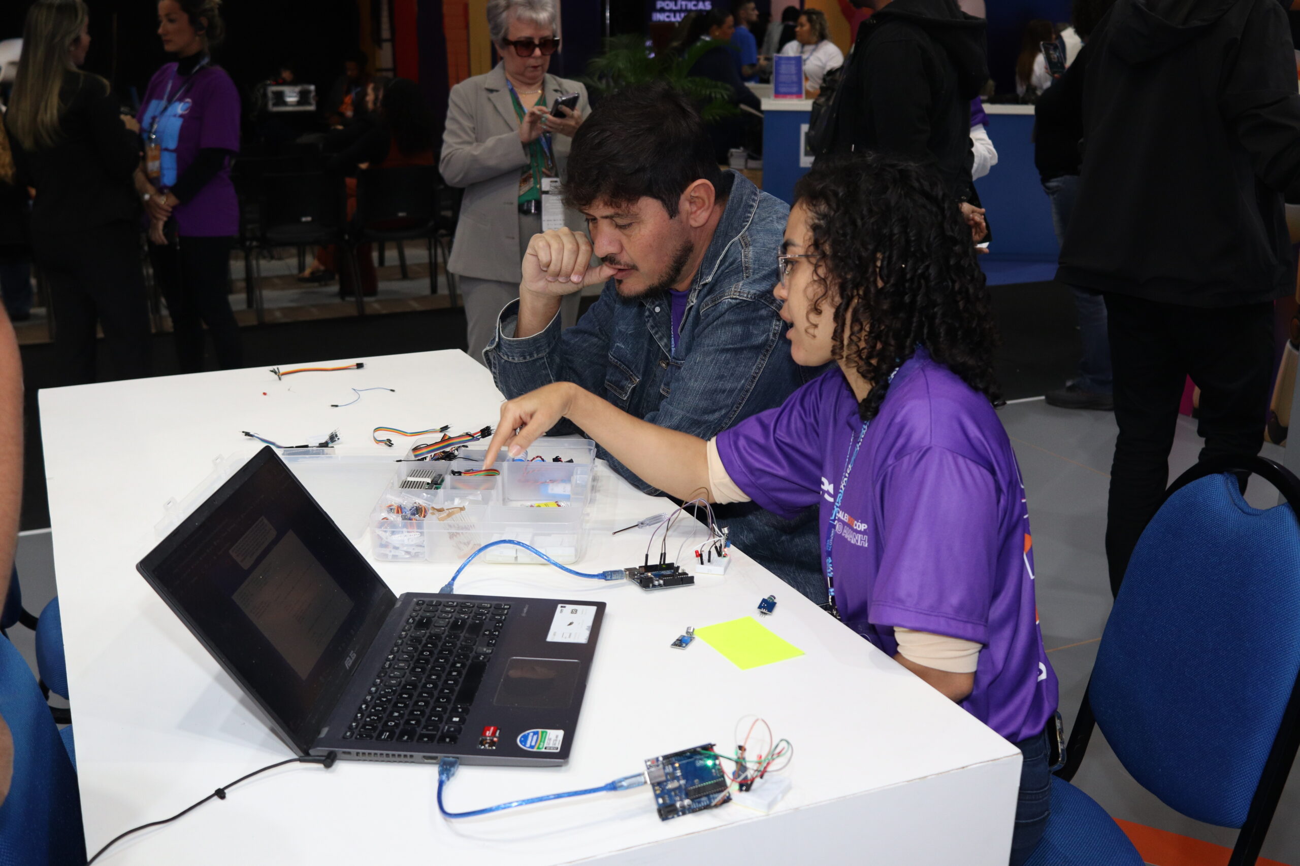 Utilizando a analogia da joaninha — um inseto pequeno, mas capaz de longos voos, também símbolo do debug (processo de resolver problemas de código) —, os participantes construíram um circuito com movimento, porém sem microcontrolador.