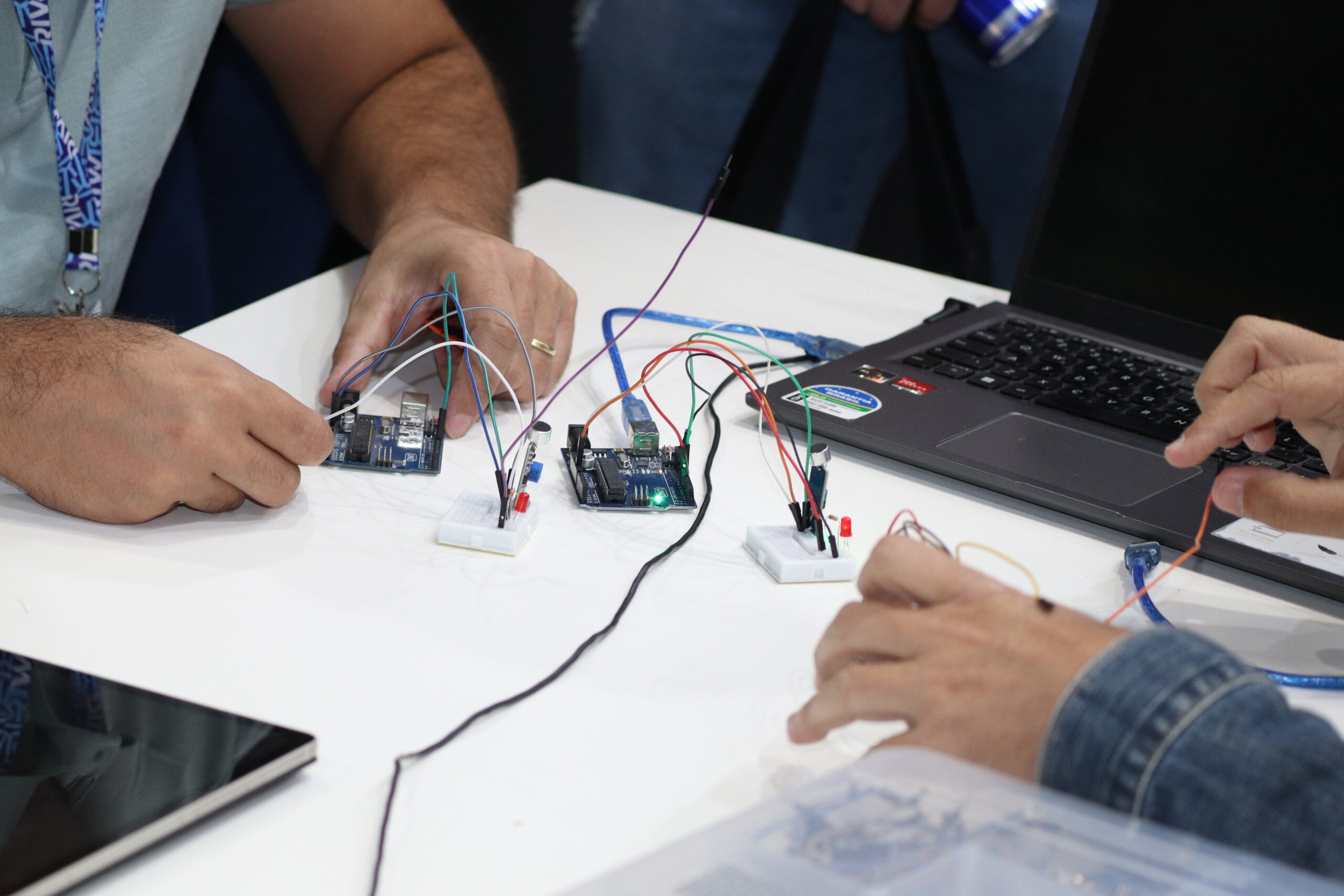 Atividade voltada para a criação de projetos inteligentes, como a automatização de espaços com circuitos de baixo custo — envolvendo sensores de palmas e potenciômetros —, utilizando a plataforma eletrônica de código aberto Arduino.