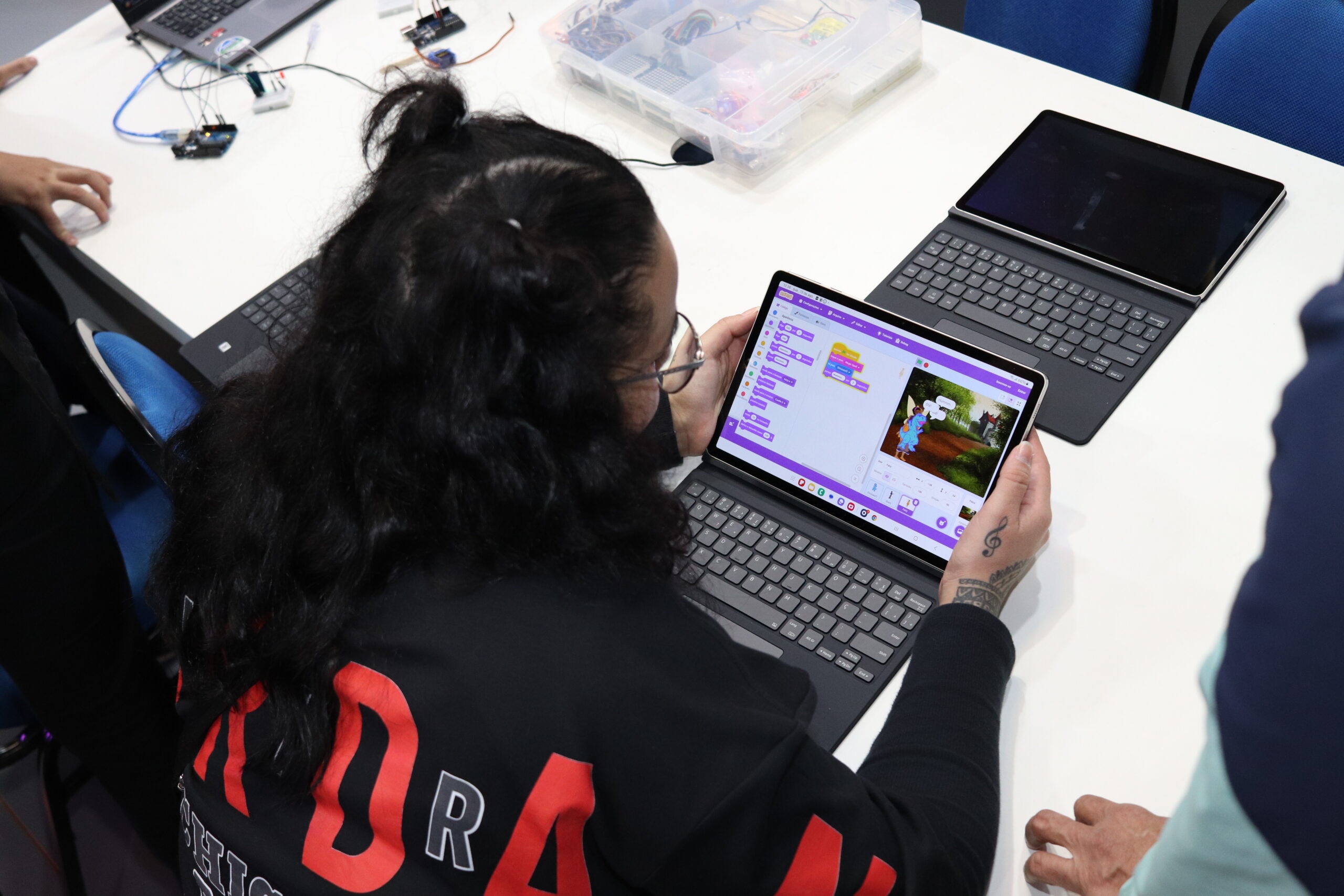 Mostrando como a comunicação clara, a interpretação textual e a estrutura da linguagem são fundamentais para o pensamento computacional, os participantes vivenciaram experiências na área de programação, construíram códigos e, ao final, elaboraram uma literatura de cordel.