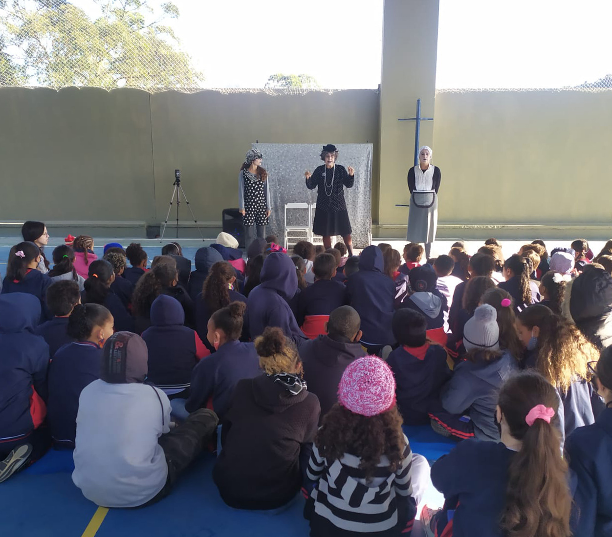 Para encerramento da semana mundial do brincar, convidamos as famílias das crianças do projeto e crianças das Escolas Municipais do entorno para participarem de uma atividade de apresentação artística com a Companhia Ih Contei no teatro da nossa unidade.