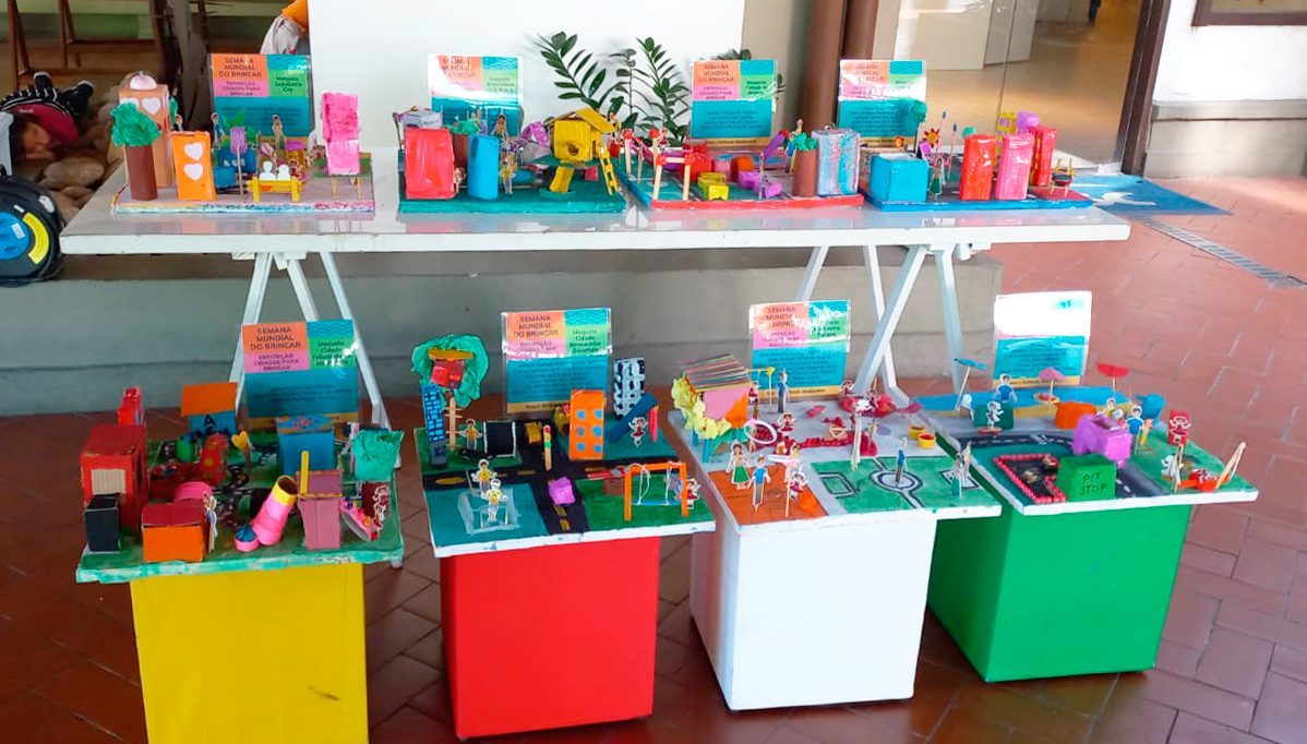 Durante todo o mês de maio, a escola promoveu ações pelo brincar extensivas às escolas públicas do entorno. Houve também a produção de brinquedos